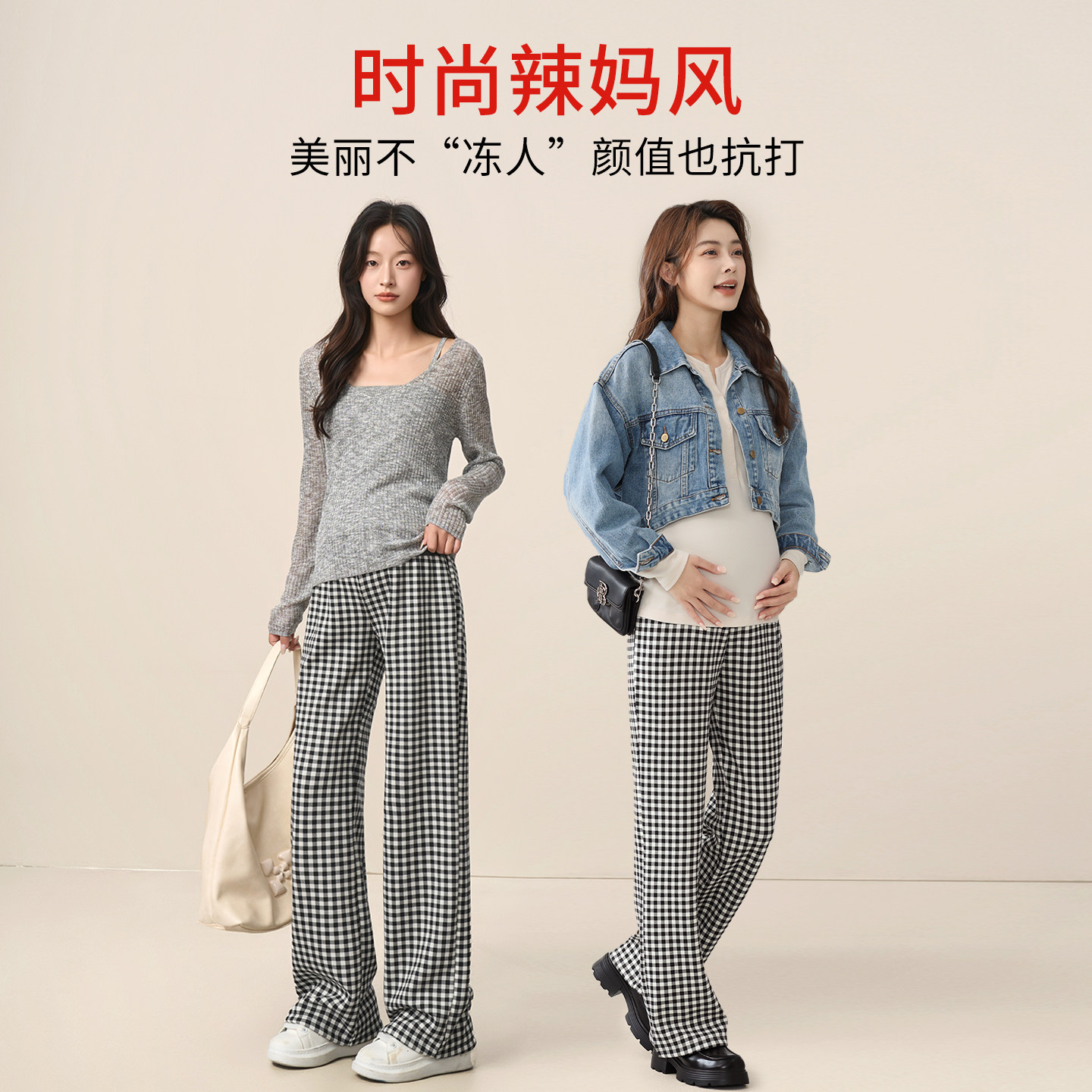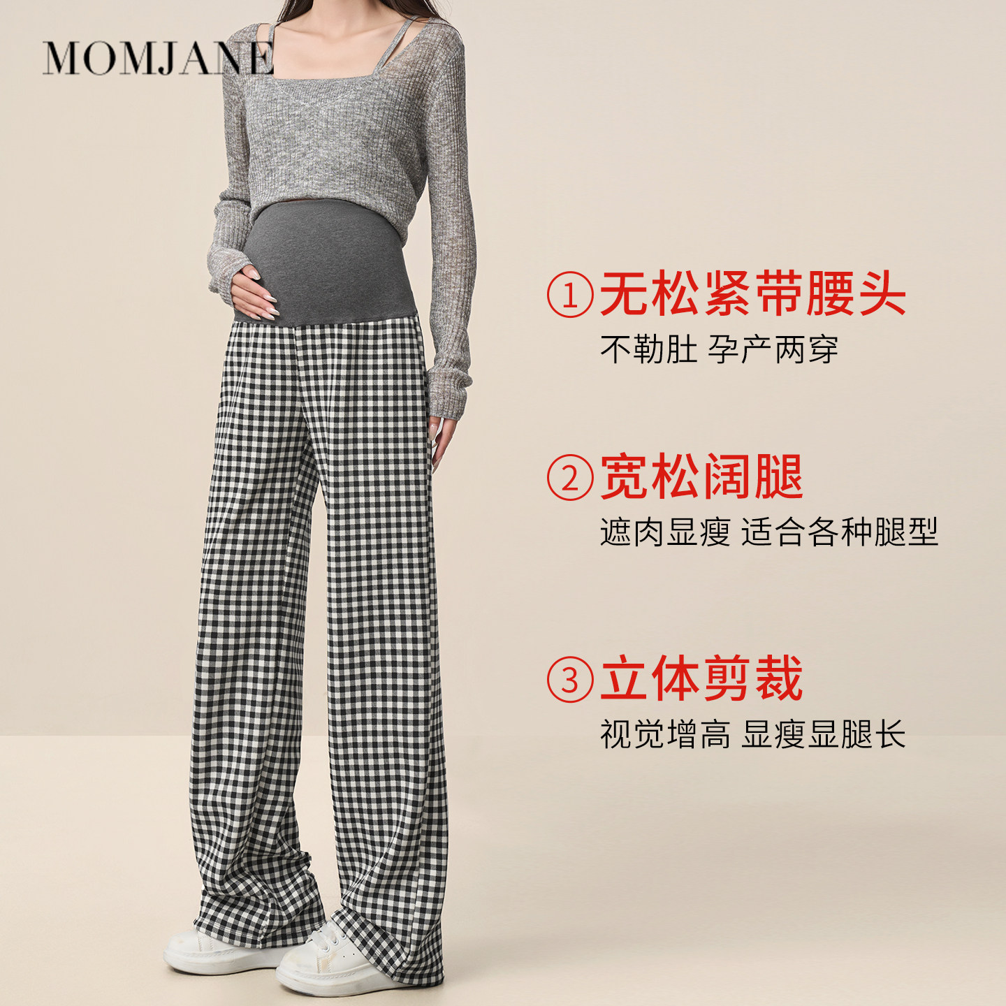 春秋季 秋装 格子阔腿裤 休闲直筒长裤 外穿 子加绒加厚2026新款 孕妇裤