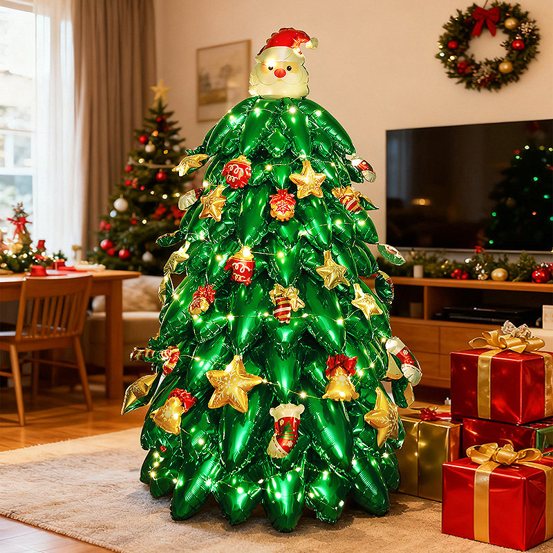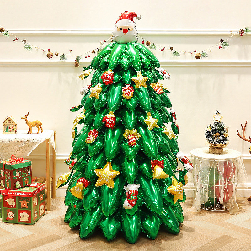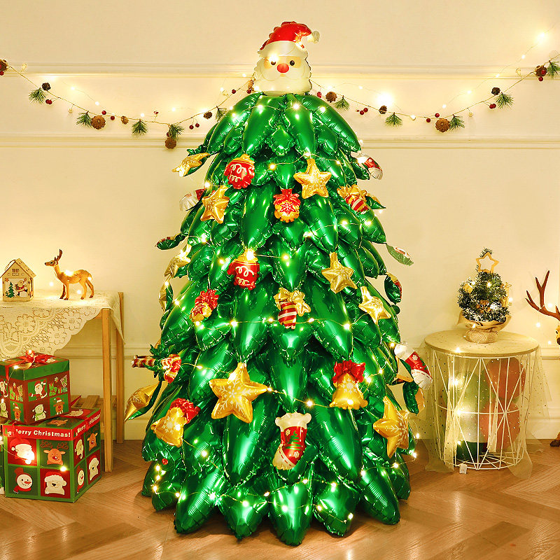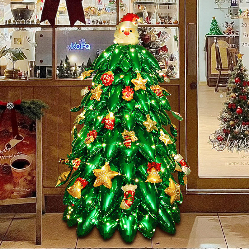 圣诞气球树装 饰发光老人堆堆树铝膜充气站立摆件场景布置拍照道具