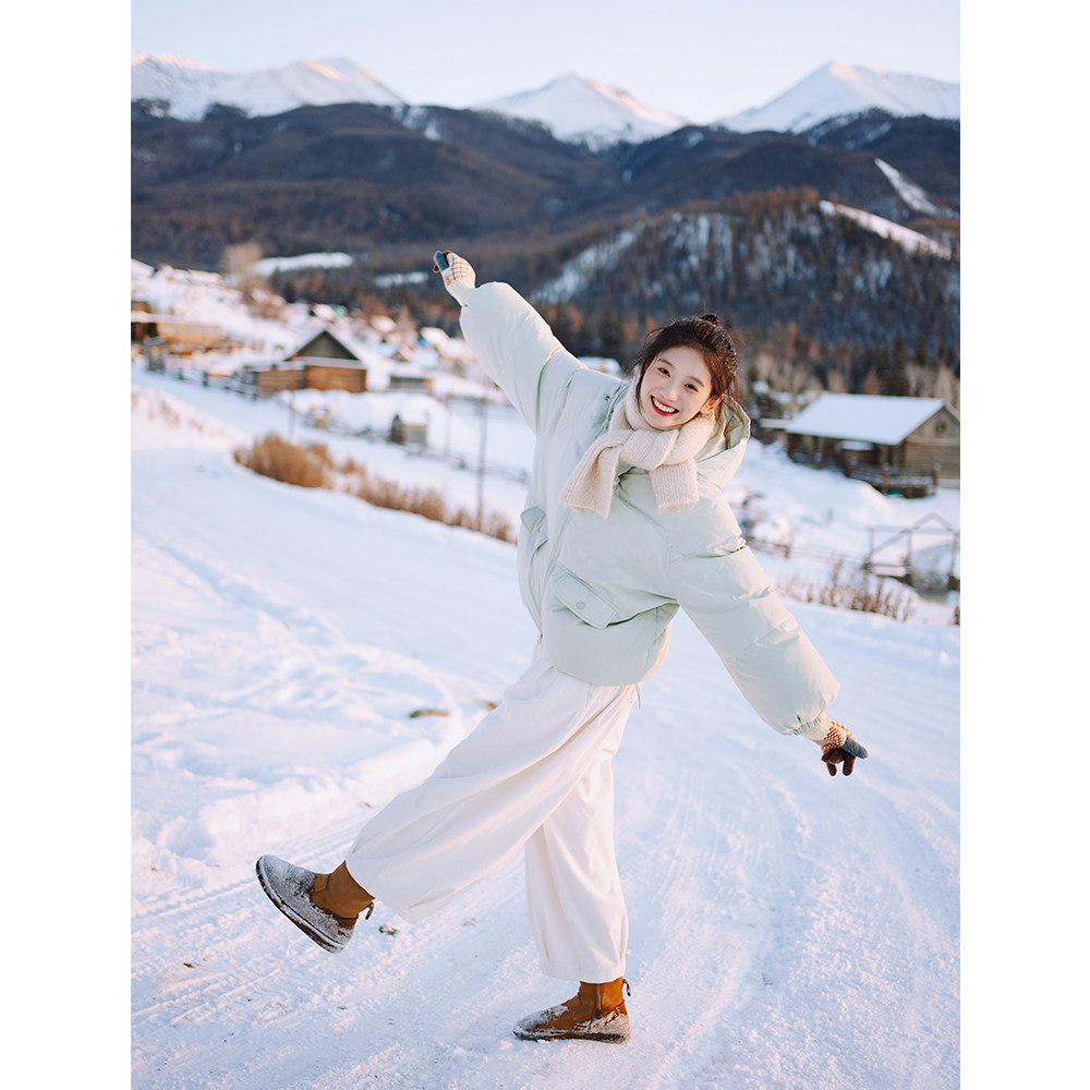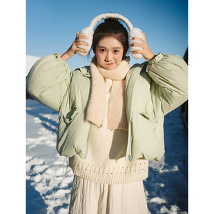 绿色显白90白鸭绒短外套柔软 很少见 像面包 青苹果羽绒服 古苔