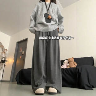 秋休闲阔腿运动裤 2025超火 胖mm大码 子冬加厚灰色糯米裤 加绒裤