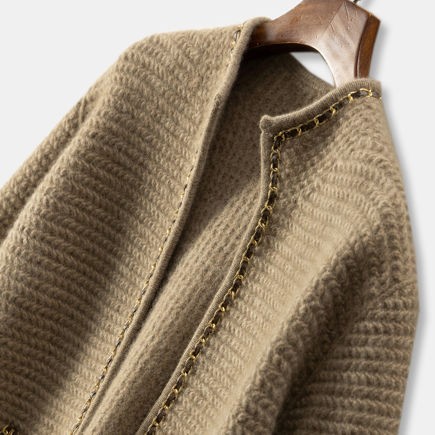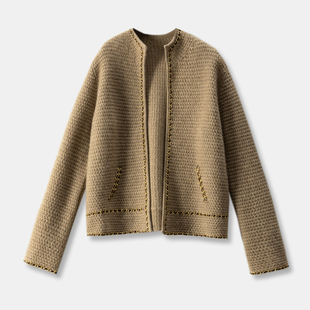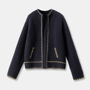 女7Y50 法柜100羊绒重工手工链条无扣毛衣开衫 H春上7号 原D奢货