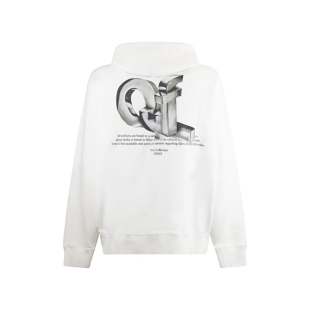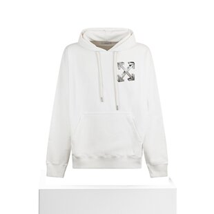 米白色標誌印花抽繩連帽衫 1h可退 男士 white OMBB0 香港直邮off