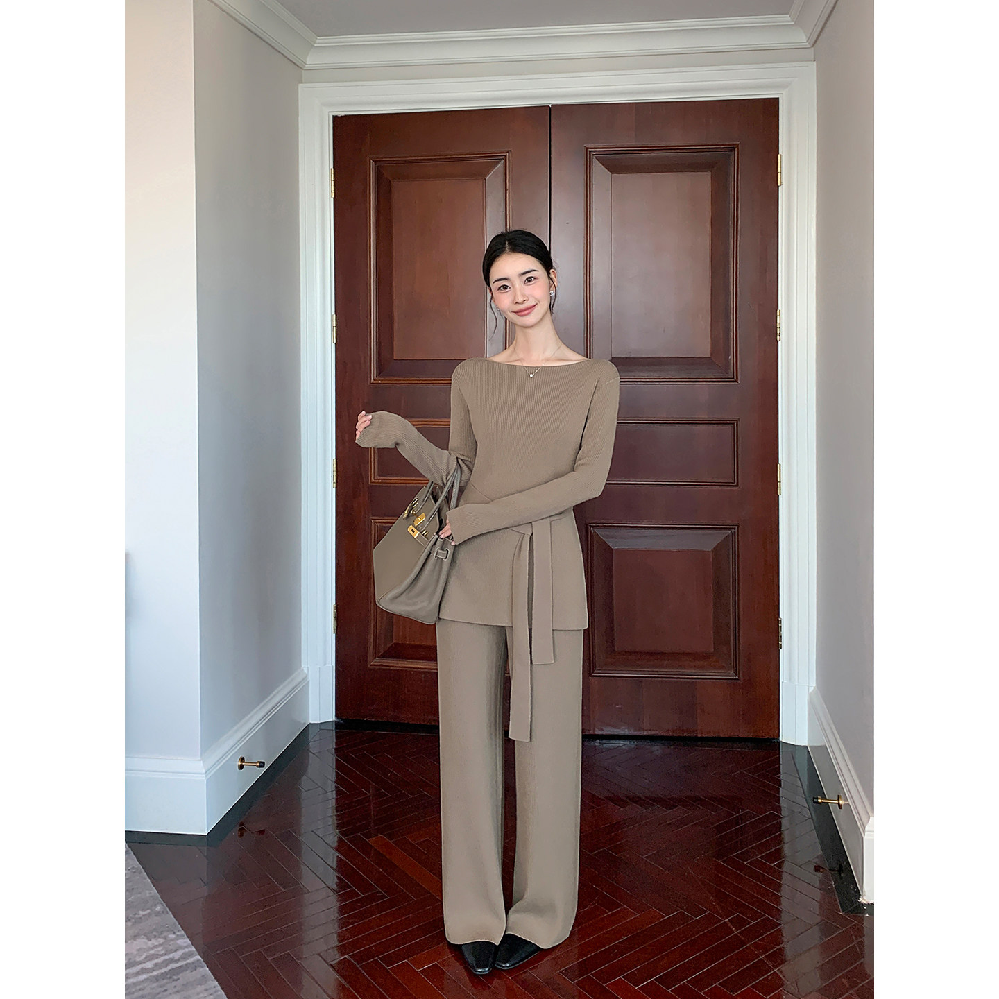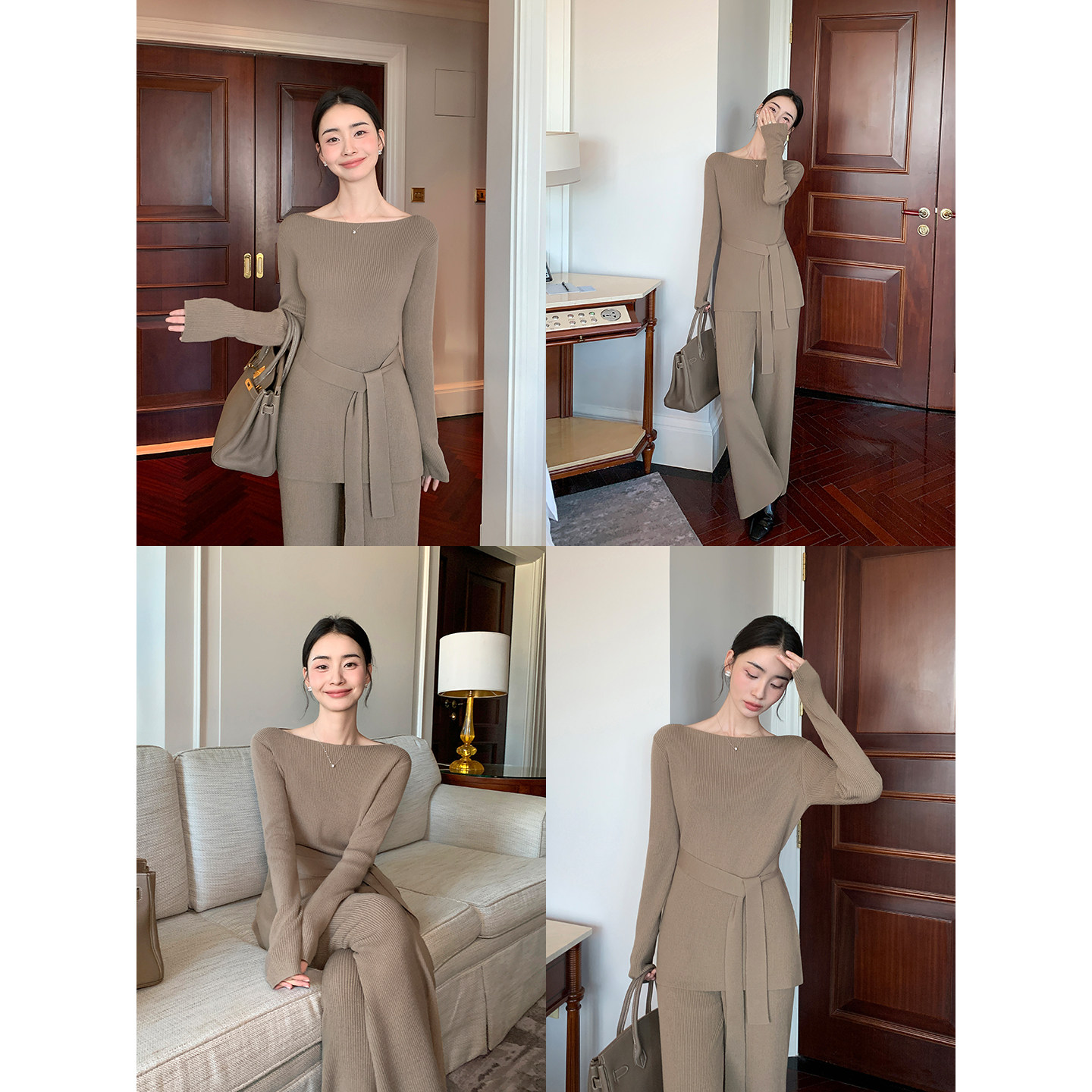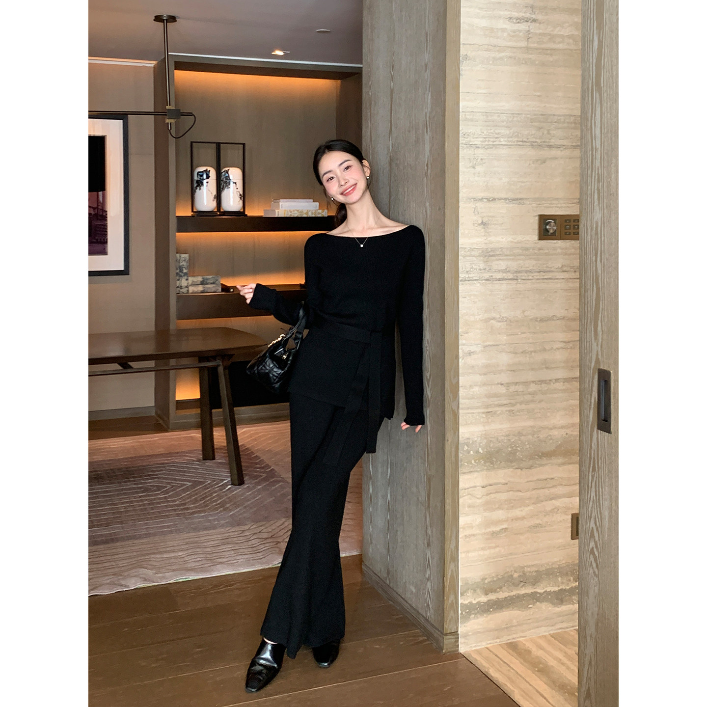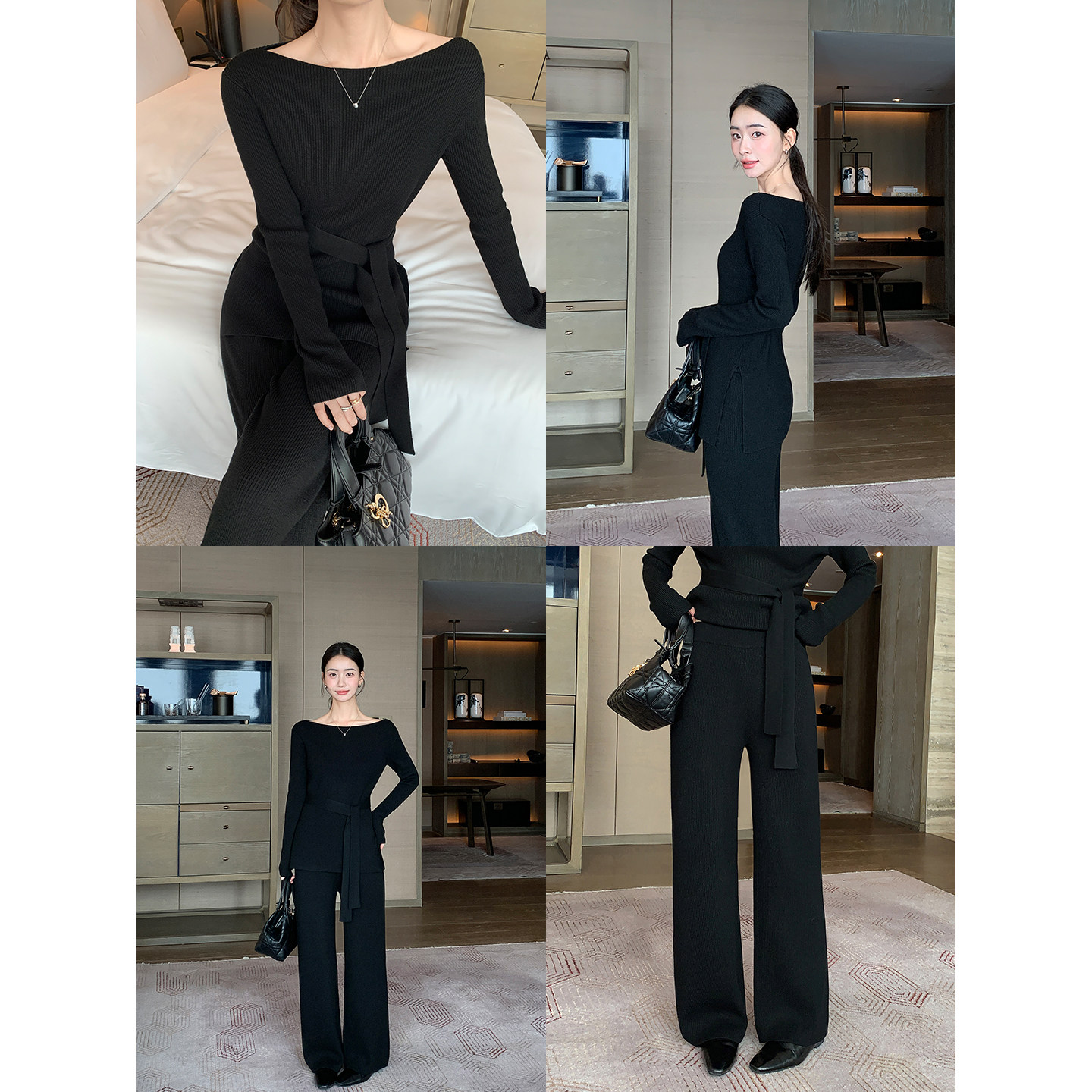 通勤套装 一字领羊毛收腰毛衣女宽松阔腿休闲裤 Lin极简妙义 Maven