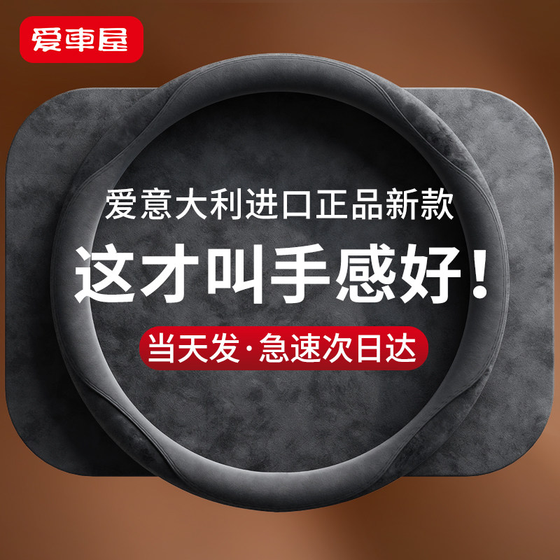 汽车方向盘套四季 保暖透气吸汗舒适简约型 通用型麂皮绒把套冬季