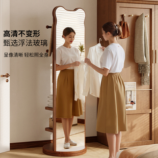 小熊旋转全身镜落地镜家用卧室穿衣镜可移动试衣镜挂衣架一体镜子