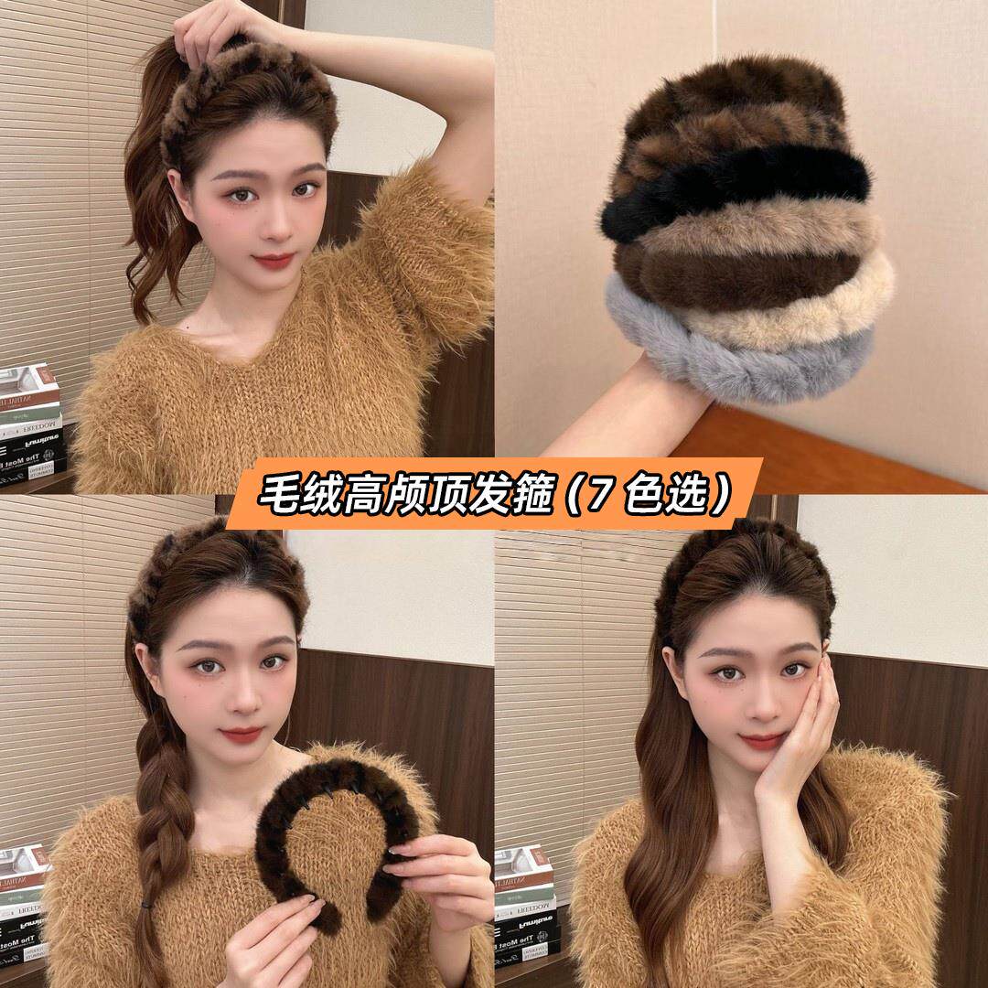 毛绒豹纹发箍女款 发卡显脸小高颅顶神器 洗脸头箍女高级感洋气时尚