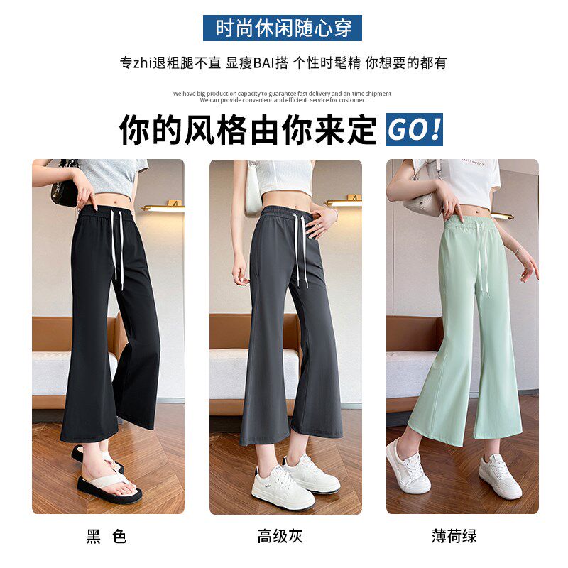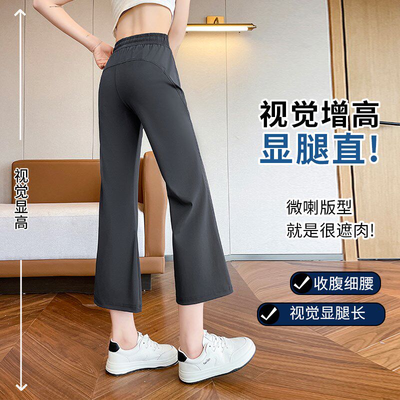 小个子运动冰丝休闲七分卫裤 绿色微喇叭裤 薄款 夏季 子 子女2025新款