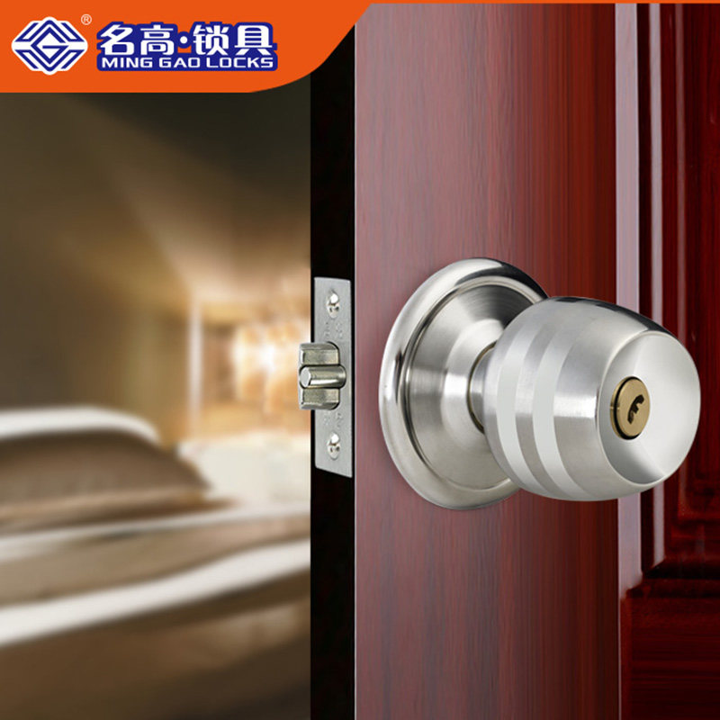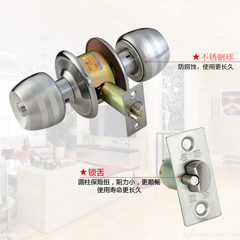 不锈钢球形锁加厚挡板纯铜原子锁芯卧室房间门锁卫生间圆球锁