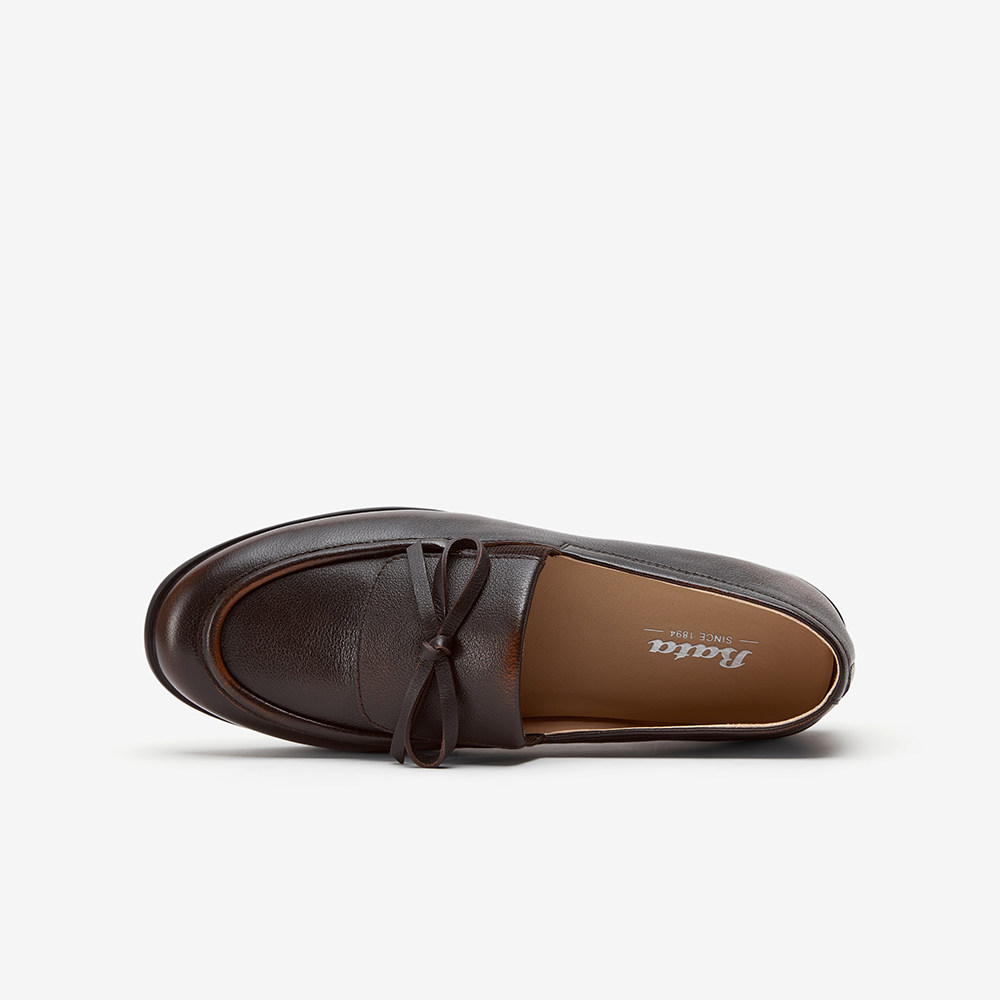 英伦时尚 新款 休闲牛皮粗跟一脚蹬68095AA6 女2026春季 Bata乐福鞋