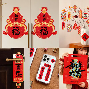 2026新款 饰新年福字入户门贴 过年春节磁吸对联马年家用植绒春联装