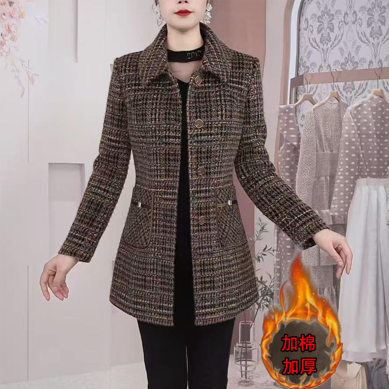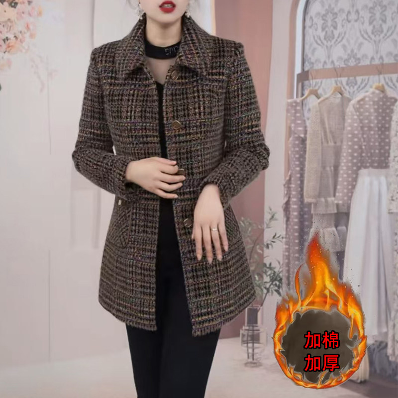 妈妈秋冬加绒夹棉小棉衣短款 碎花保暖棉服 休闲格子棉袄中老年女装