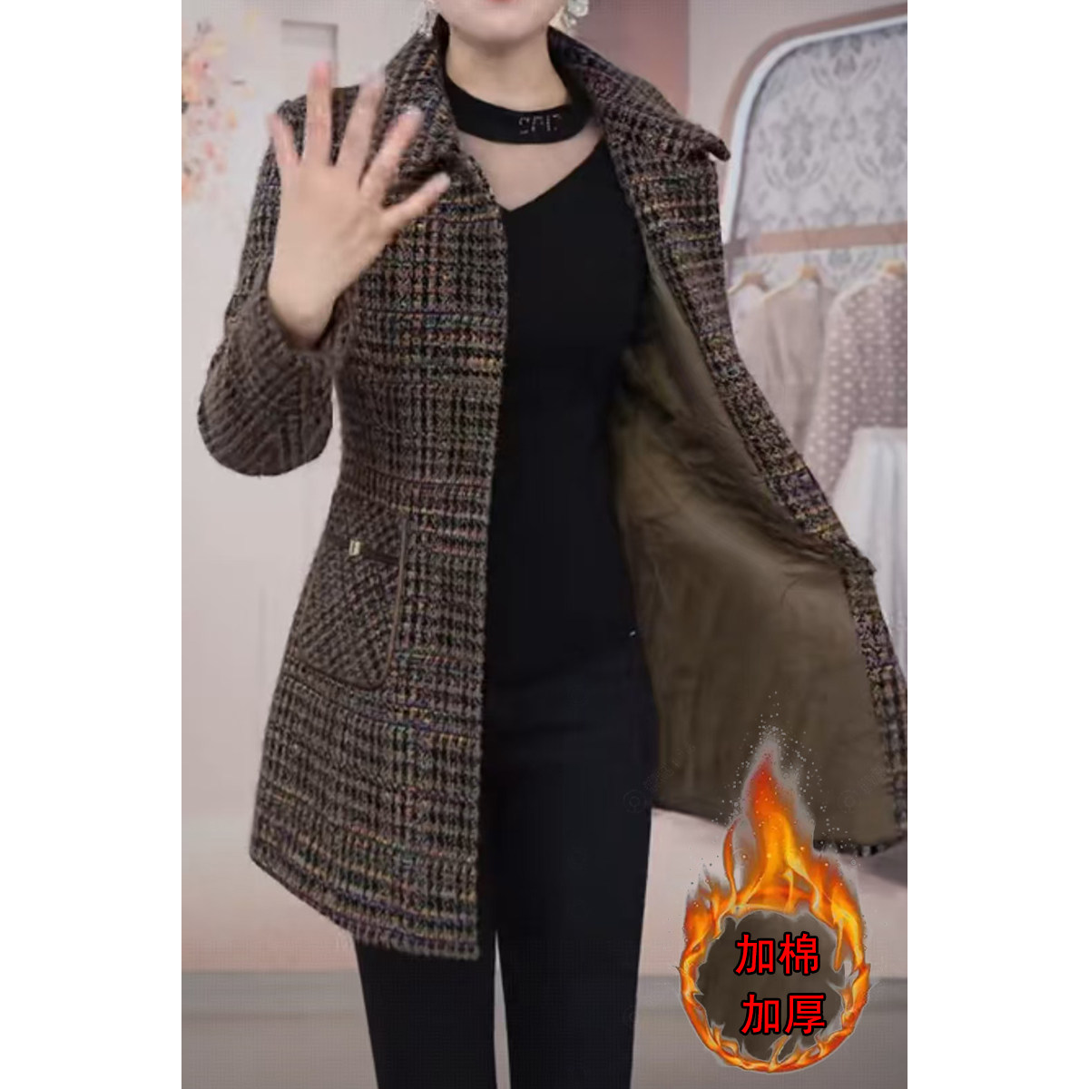 洋气棉袄中老年冬装 妈妈装 加绒加厚棉衣外套保暖居家棉服中年女装