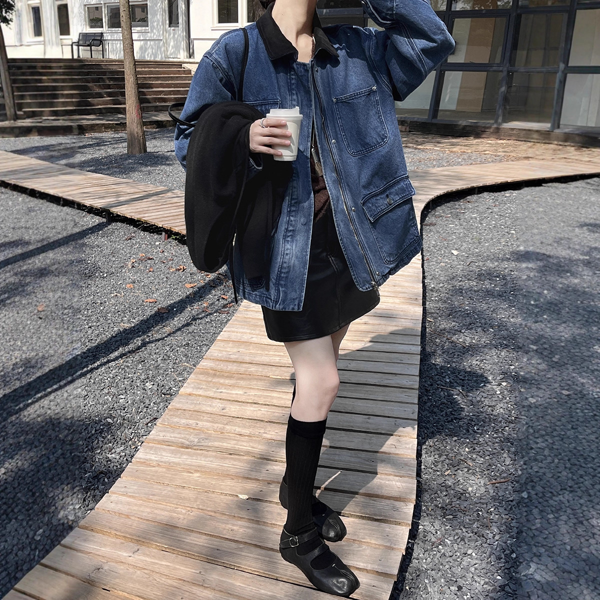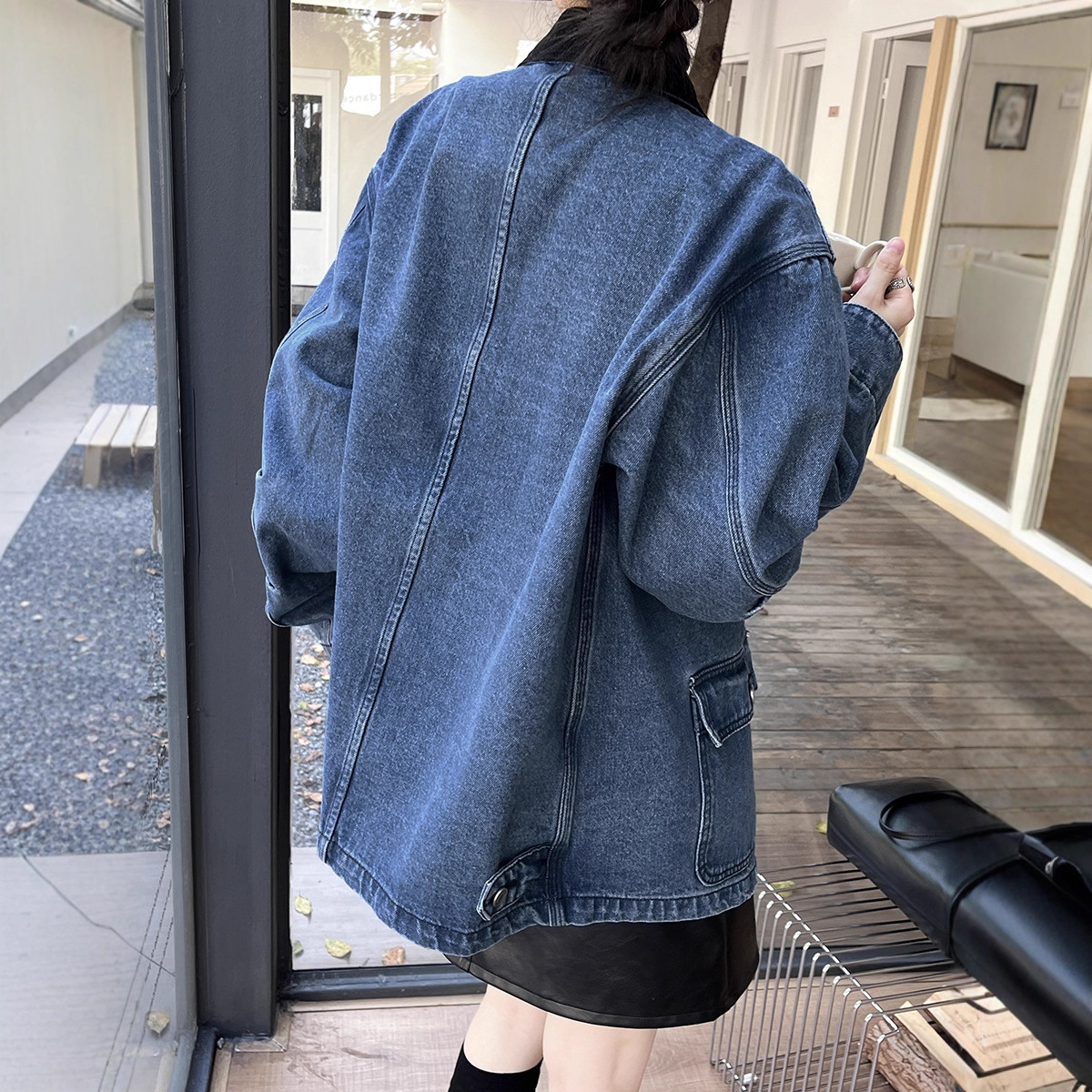 桐宝初打十三行秋新款 风牛仔外套女 复古灯芯绒撞色拼接宽松工装