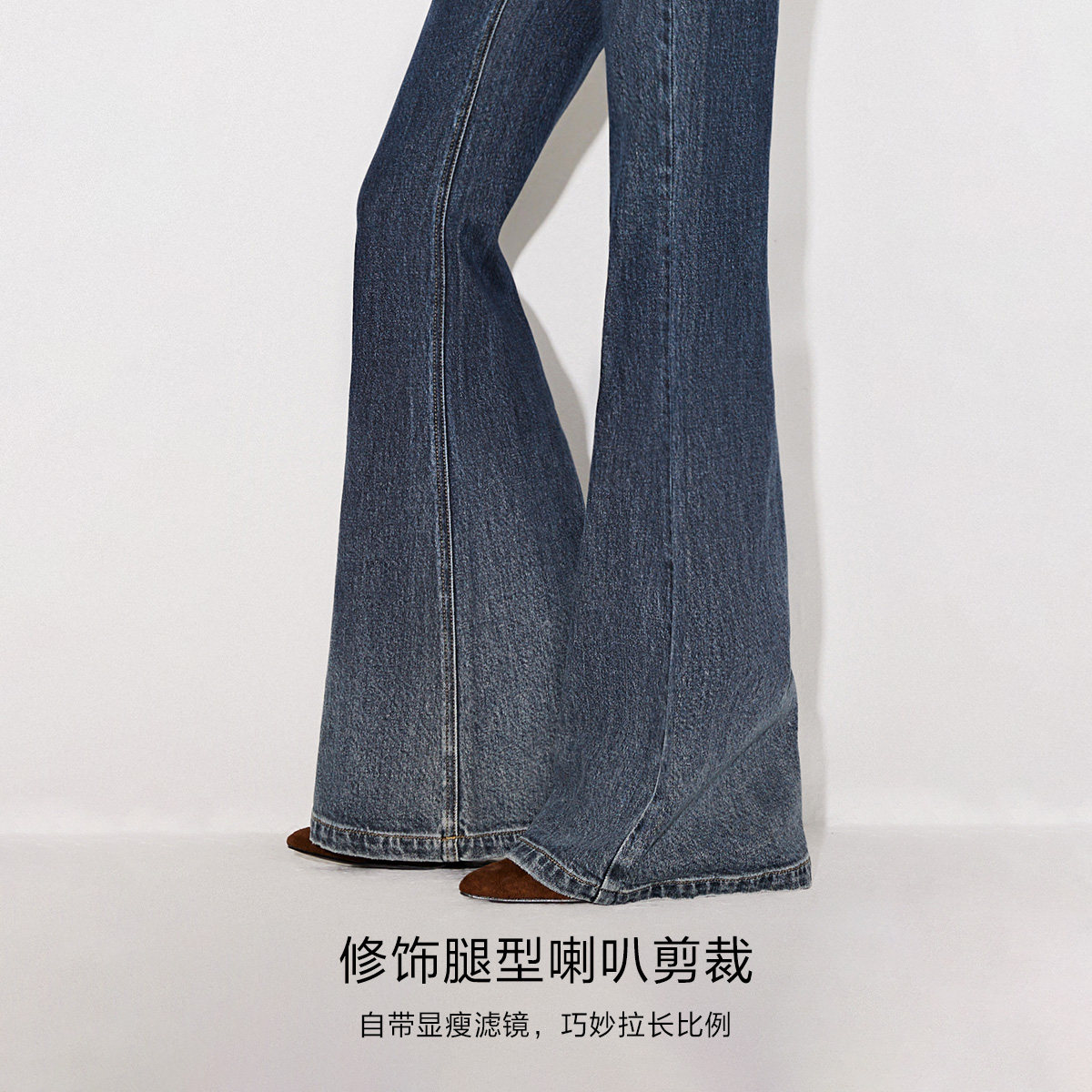 牛仔裤 ONLY2026春季 喇叭裤 做旧洗水工艺高腰三粒扣显瘦长裤 女 新款