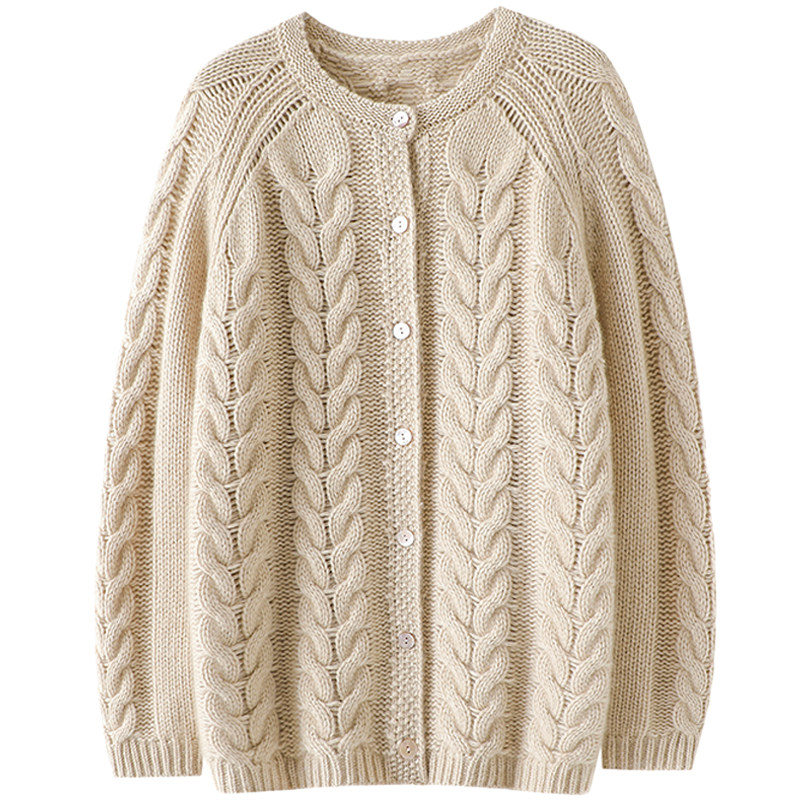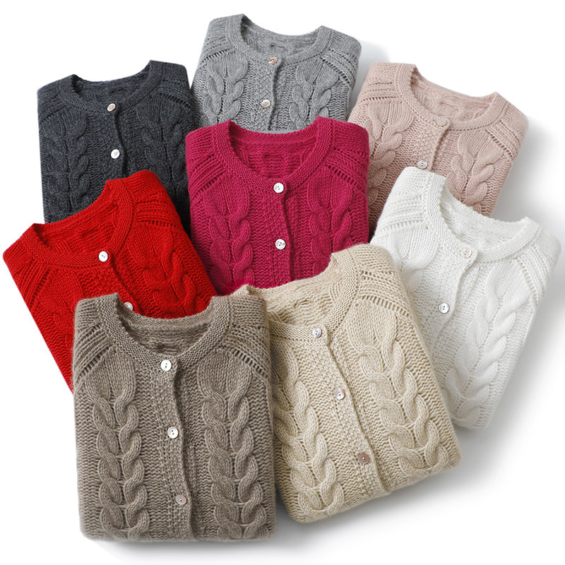 女圆领纯羊绒毛衣外套冬 加厚100%纯山羊绒开衫 穿上就破防 太美