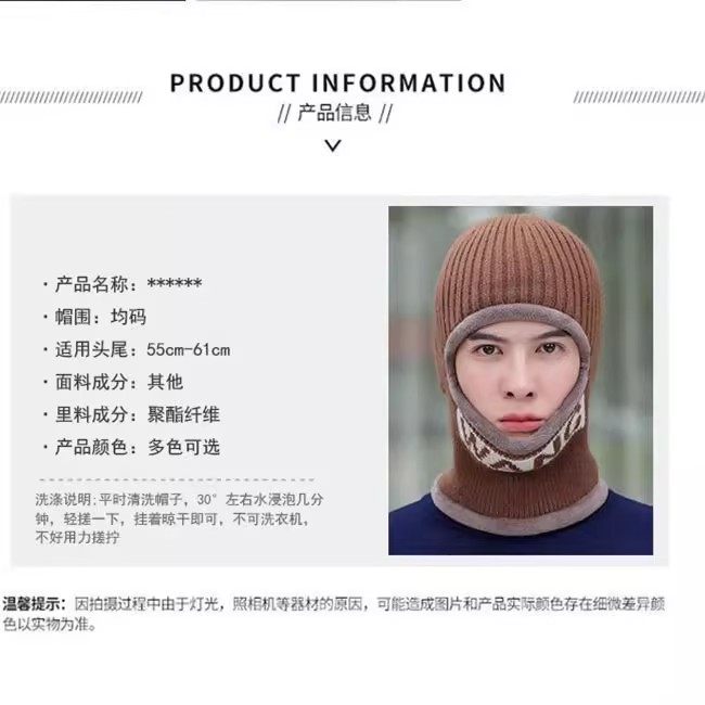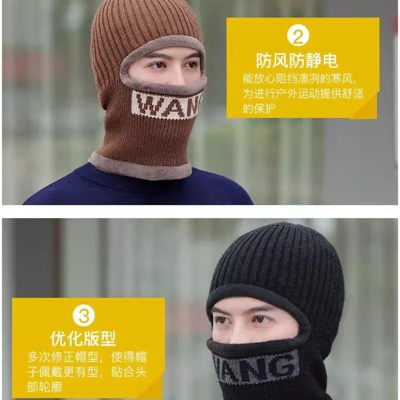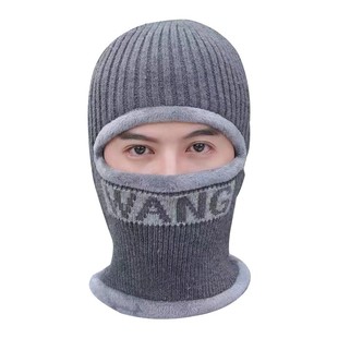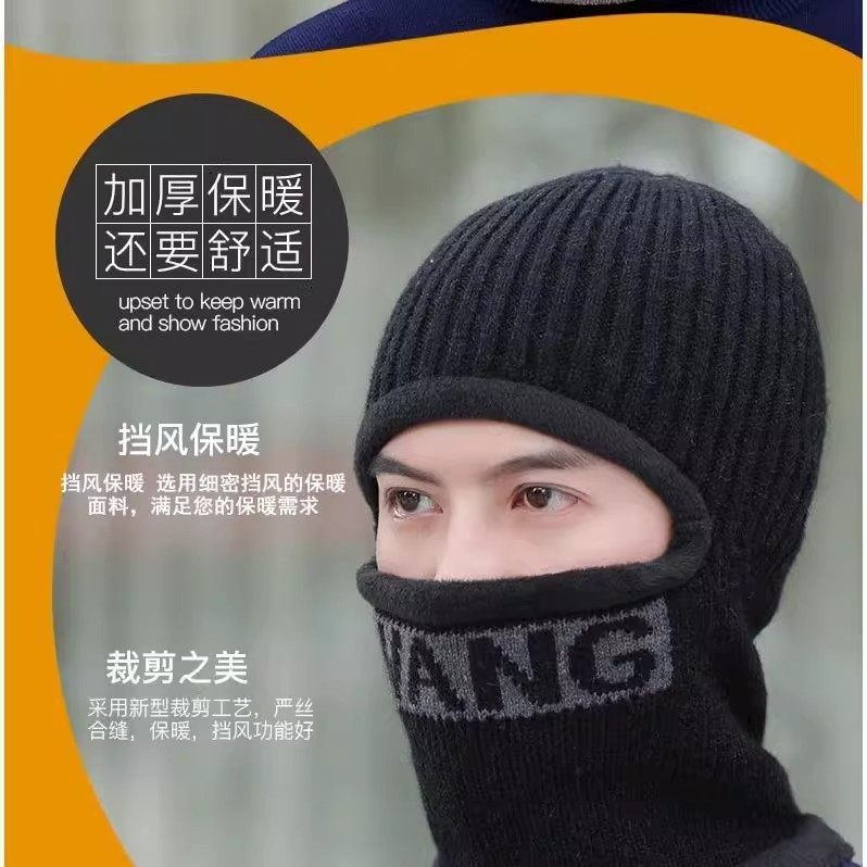 帽子男冬天加厚保暖毛线帽围脖一体棉帽冬骑车防风防寒头套针织帽