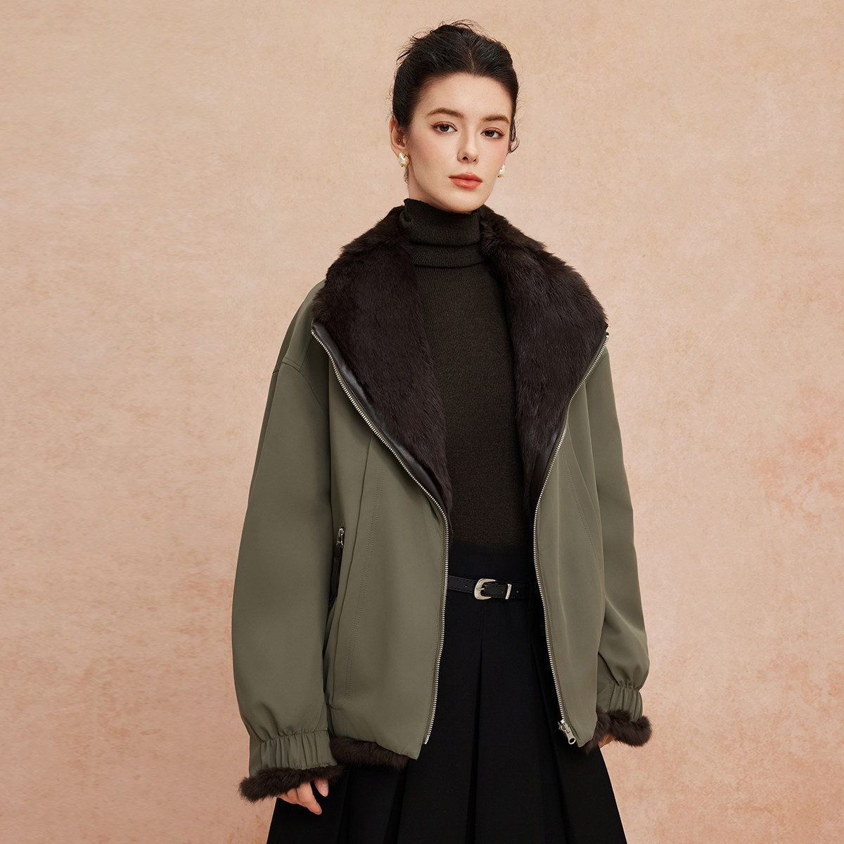 pusumede 轻奢绵羊毛双面呢大衣女气质围巾披肩毛呢外套 暖境冬日