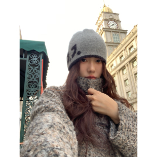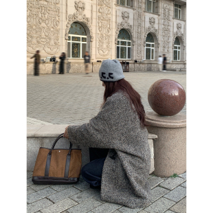 立领毛呢外套 宽松高级感中长款 Halo Luu灰色牛角扣羊毛大衣女春季