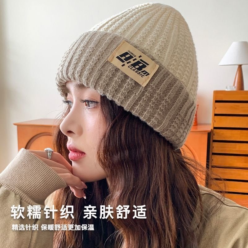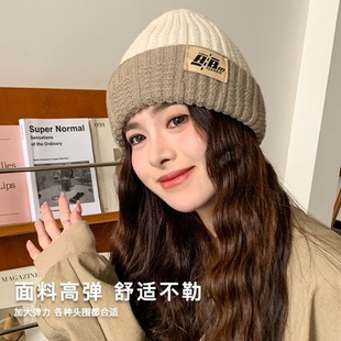 IIING帽控 登山冷帽大头围字母针织帽子女秋冬保暖显脸小堆堆帽潮