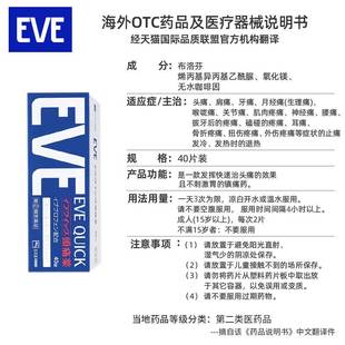 日本白兔eve止痛药布洛芬头疼牙痛止疼药痛经退热退烧药正品 40粒