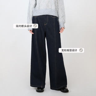 高腰遮胯休闲直筒裤 拉夏贝尔复古加绒窄版 新款 女秋冬季 阔腿牛仔裤