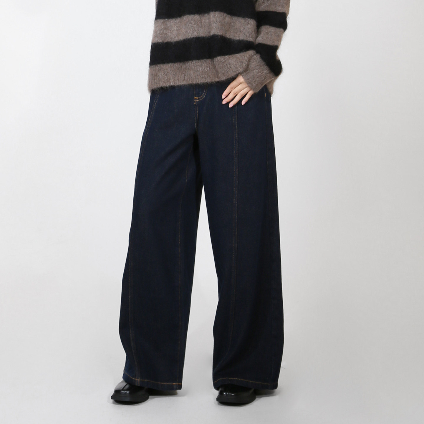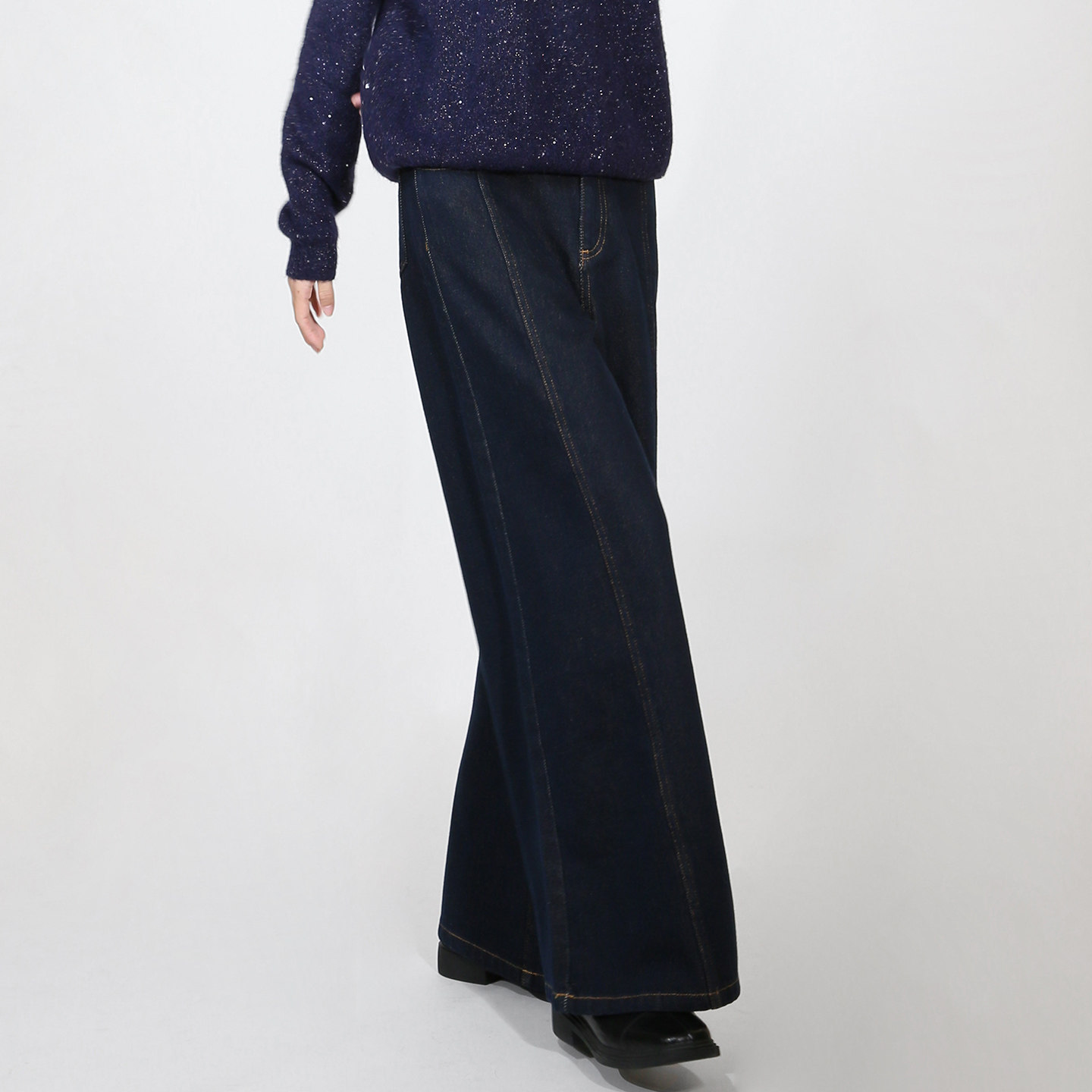 新款 落落狷介 2025年冬季 小个子刺绣阔腿裤 设计感高腰 加绒牛仔裤