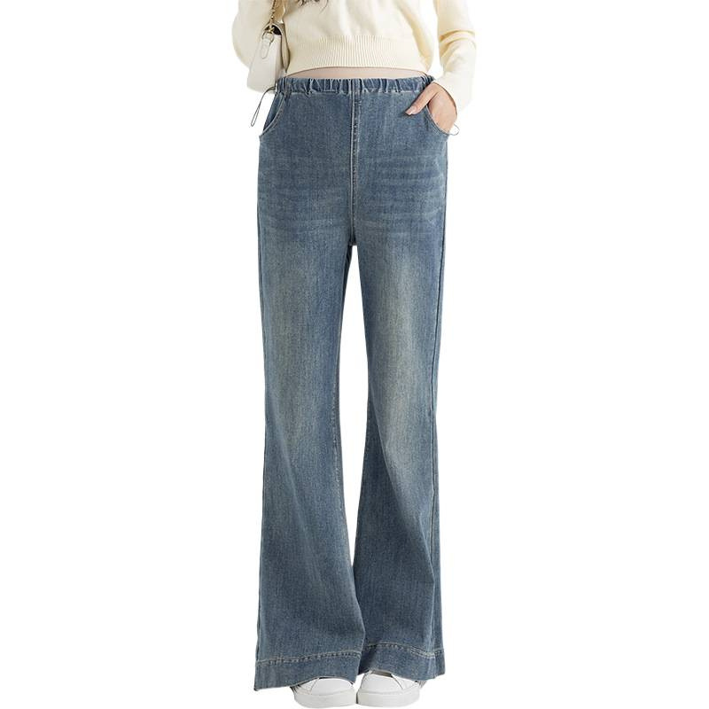 弹力加绒加厚高品质密密绒宽松孕妇侧抽绳牛仔喇叭裤 阔腿高个子