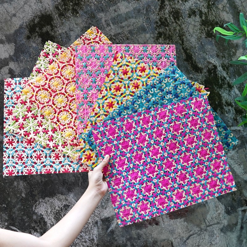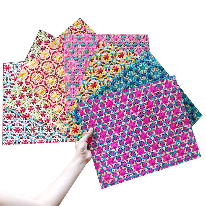 彩色竹编片方形半成品加工手工制作DIY灯笼挂画垫子扇子儿童手工
