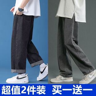 男士 春秋款 2025新款 子蓝色百搭男裤 直筒阔腿裤 浅色宽松休闲牛仔裤