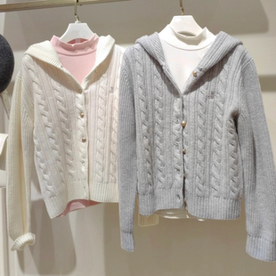 绞花拉链毛衣外套上衣 女2025秋冬新款 赵露思同款 小熊连帽针织开衫
