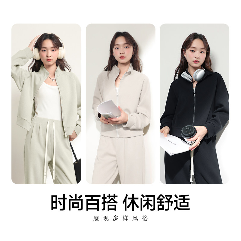 外套H 早秋无帽开衫 班尼路S&K系列黑色宽松立领卫衣女2026春季 新款
