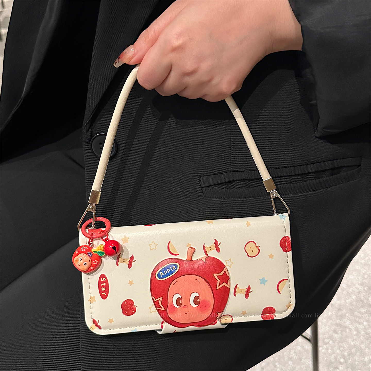 lizardhill 适用苹果16手机壳女iphone17pro翻盖15promax斜挎可背带挂绳挂件14pro超好看13 红苹果星星人新款