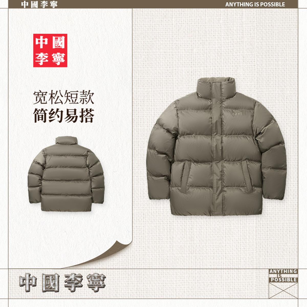 新款 冬季 连帽衣服轻薄上衣鸭绒保暖运动外套 男士 李宁火锅羽绒服