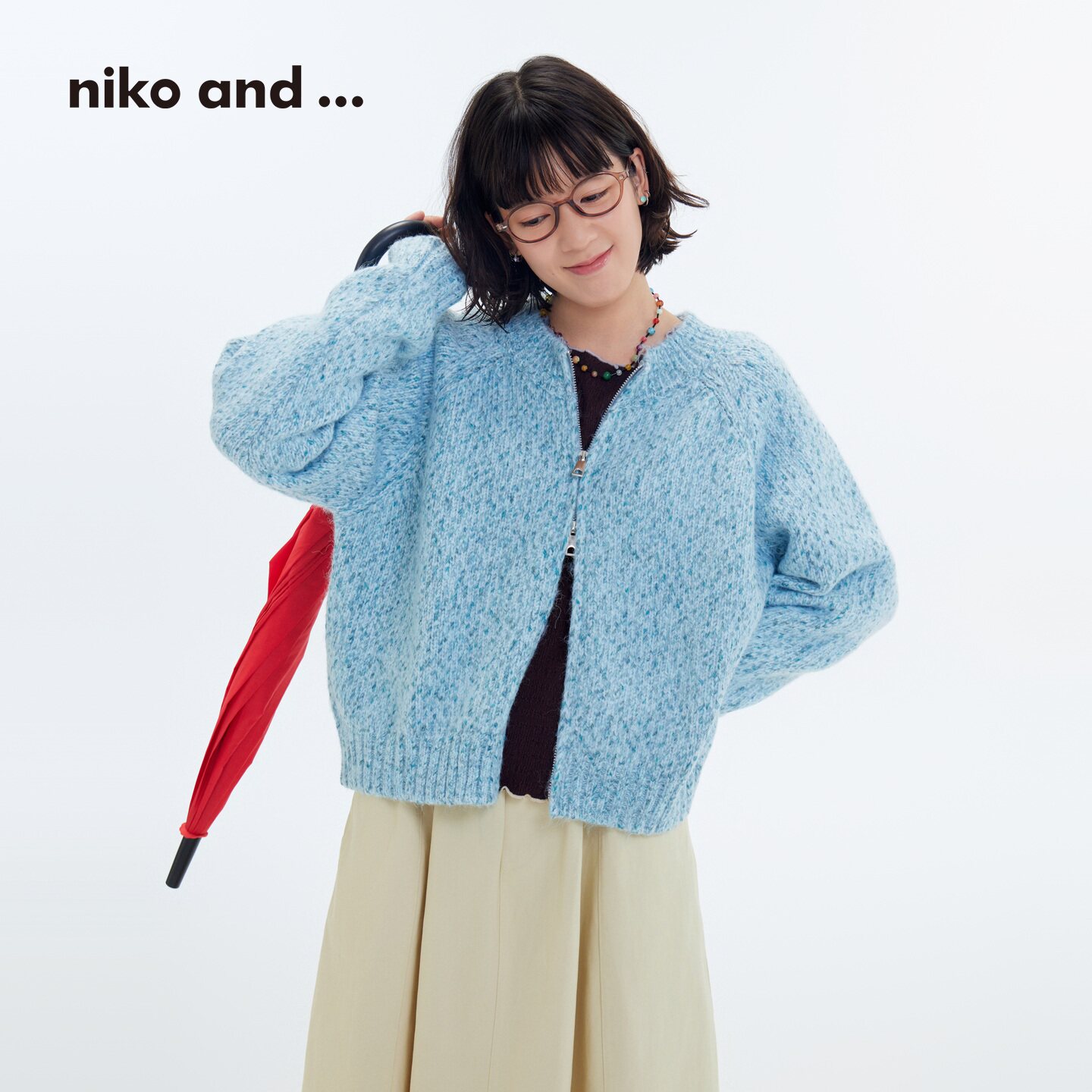 and...毛衣女 双拉链混色针织开衫 十五 新款 607105 26春季 niko