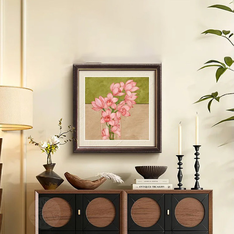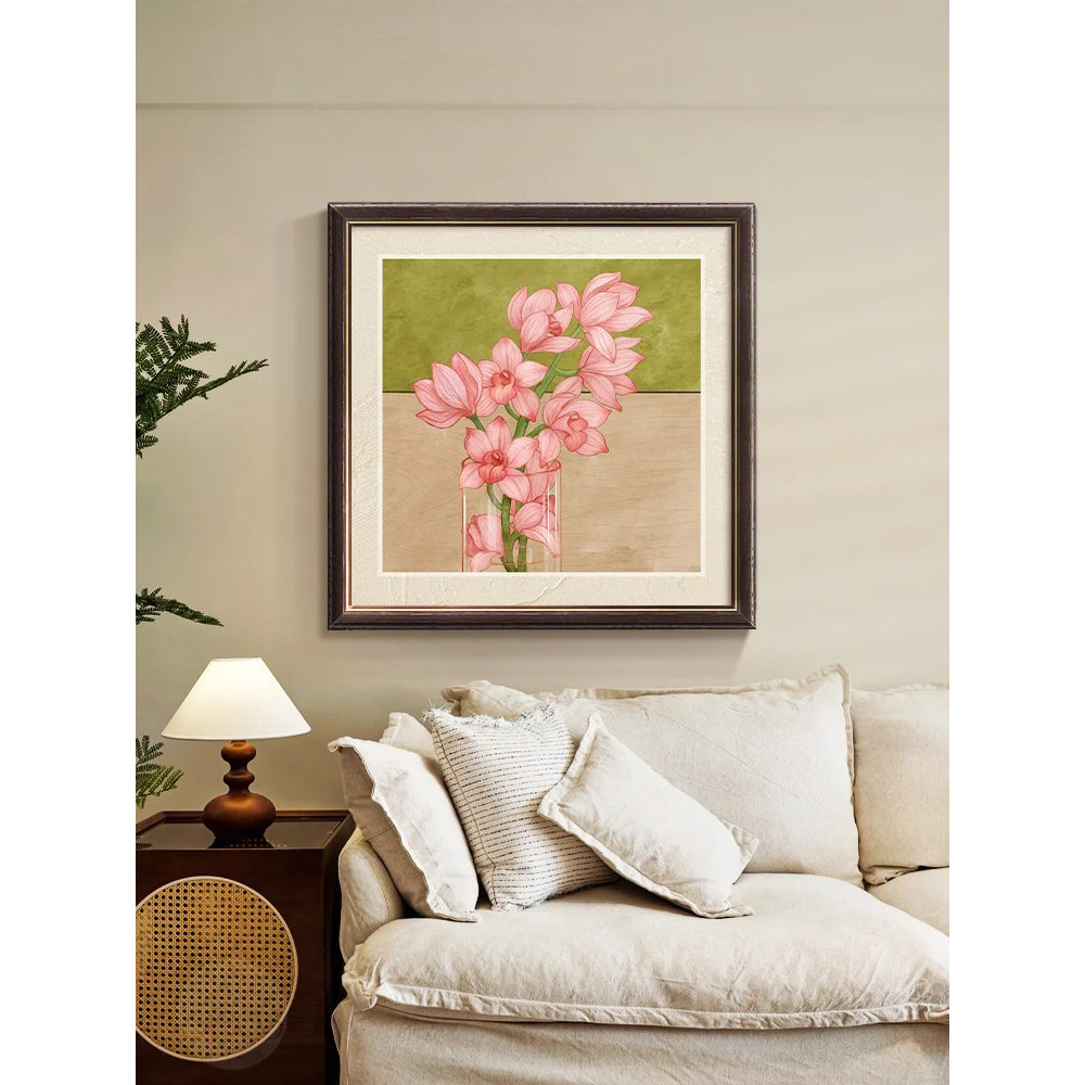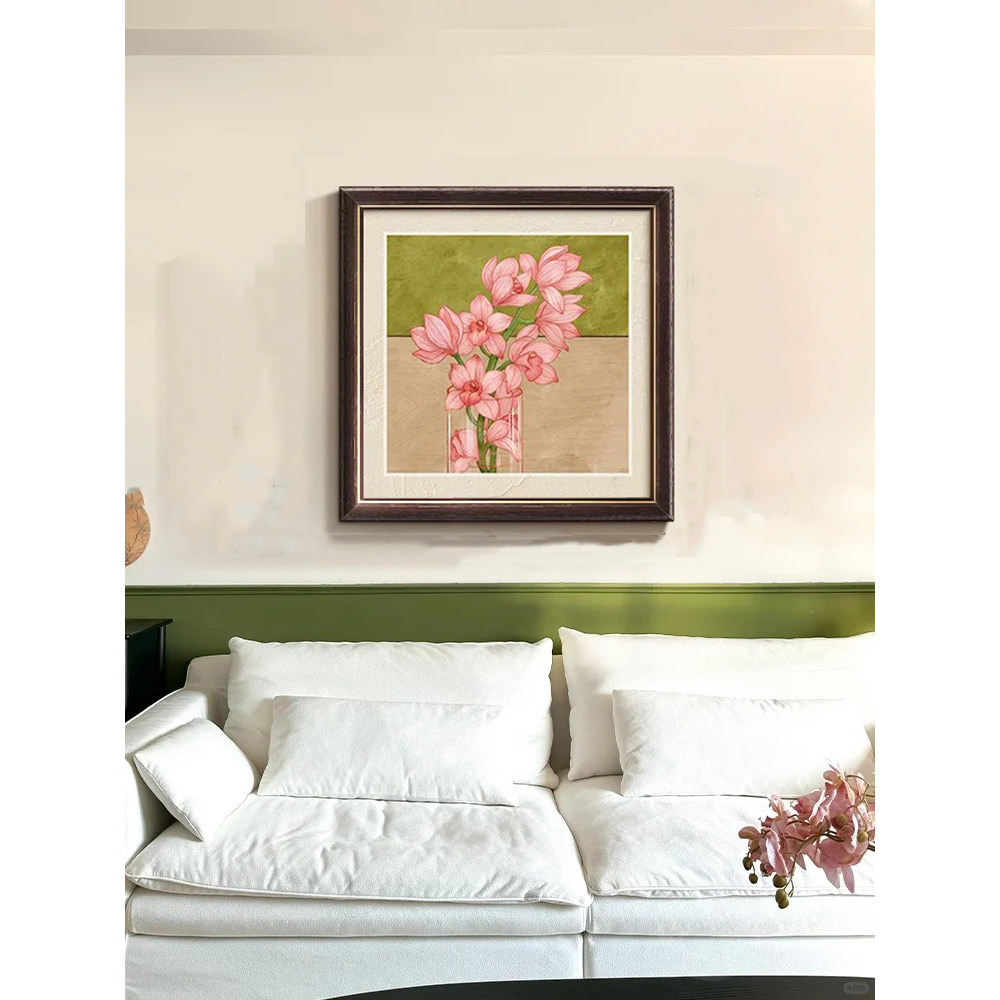 绝美中古风客厅卧室正方形装 饰画心 饰画玄关小众艺术花卉油画布装