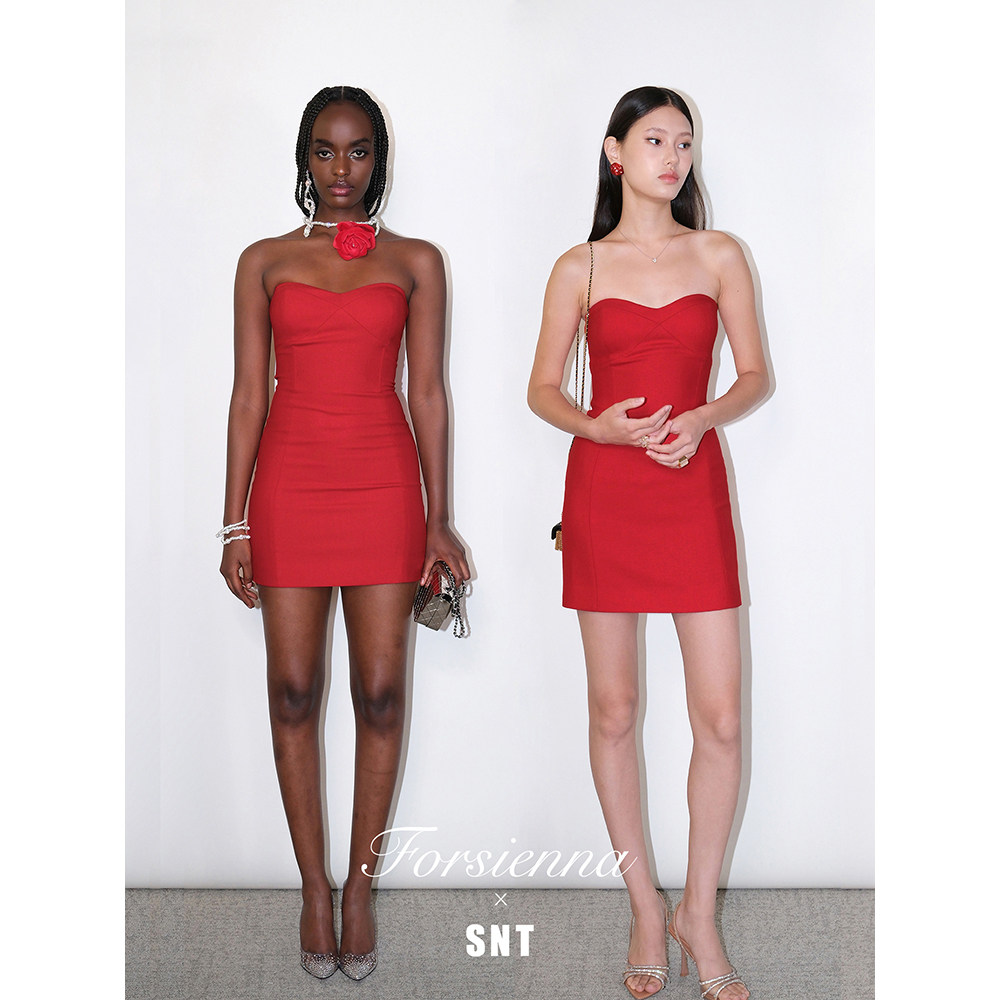 红色抹胸修身 非常醇正 小礼服裙 重磅羊毛 SNT