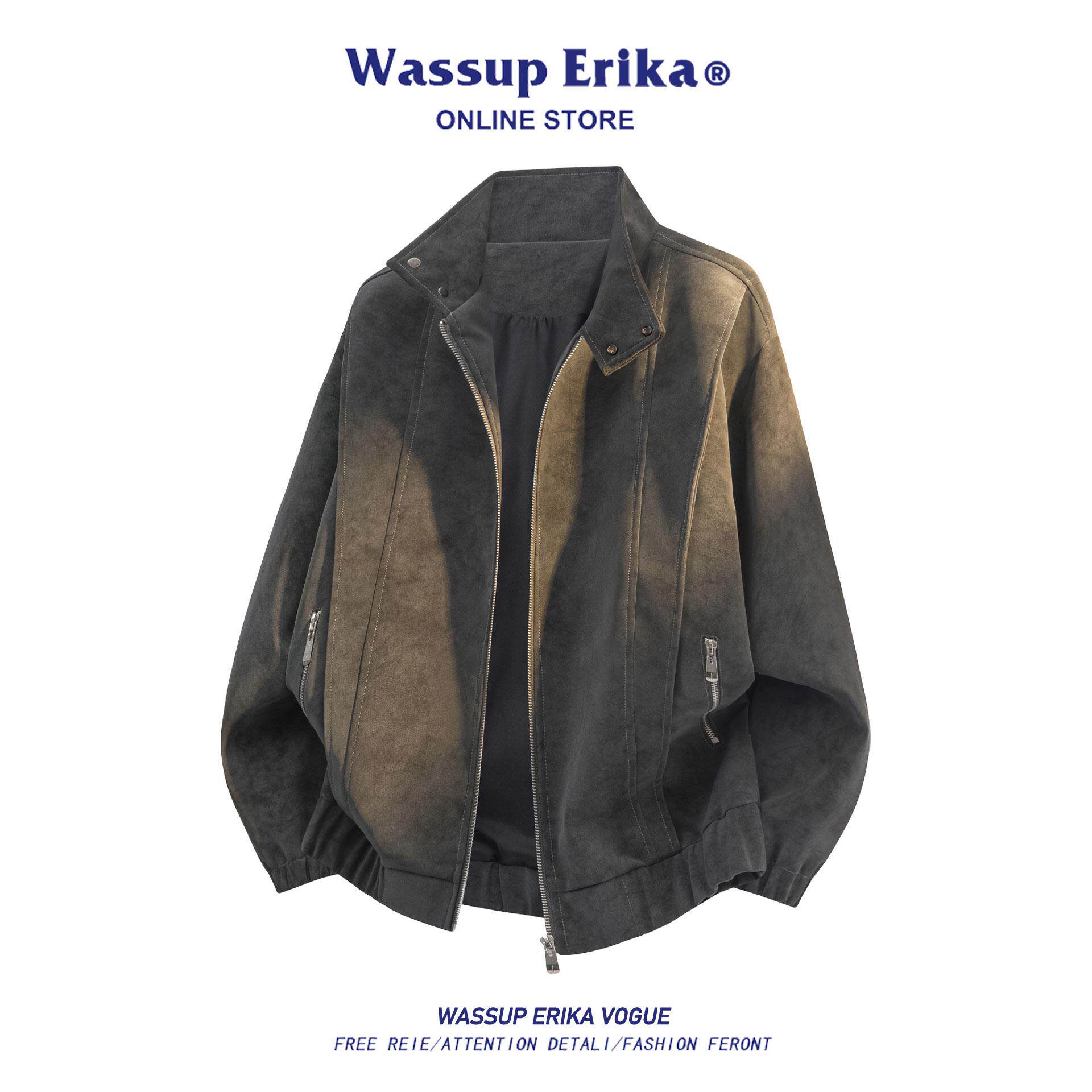 秋冬季 复古pu皮衣外套男士 潮牌休闲宽松加绒夹克 ERIKA美式 WASSUP