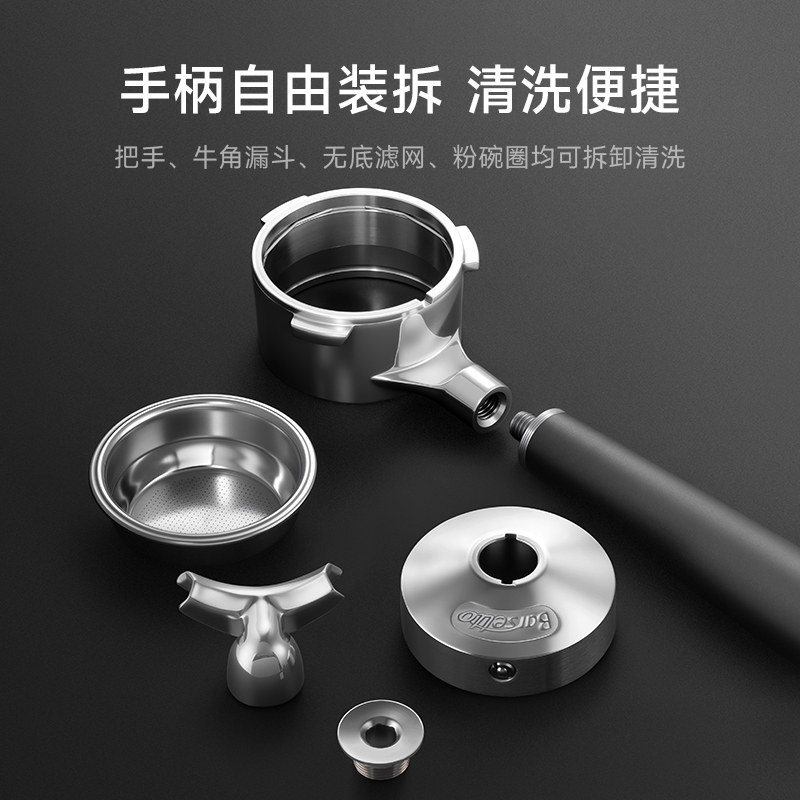 Barsetto百胜图58mm二合一无底牛角手柄不锈钢可拆咖啡机配件器具