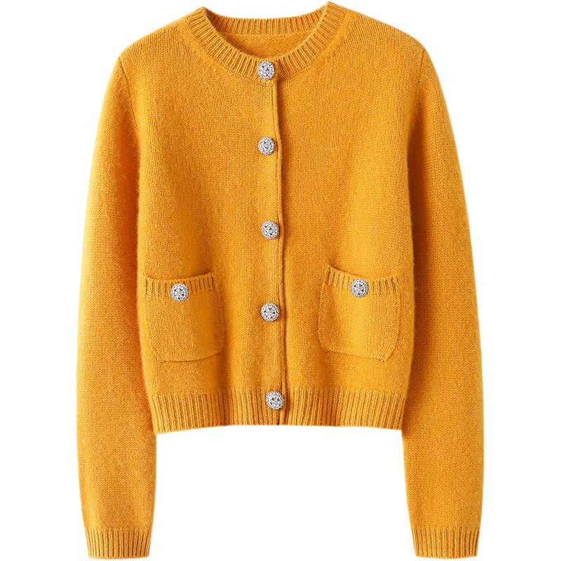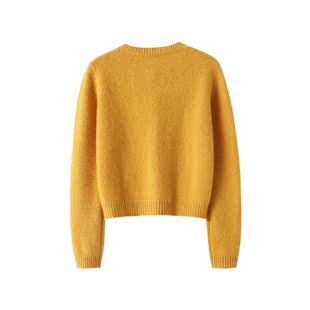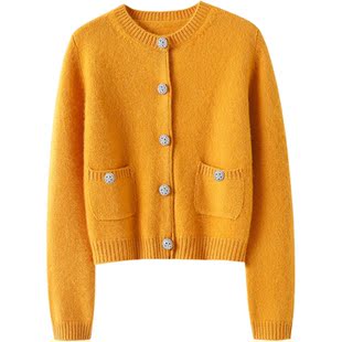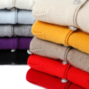 启超官方正品 女圆领纯羊绒毛衣针织小外套 粗针加厚纯山羊绒开衫