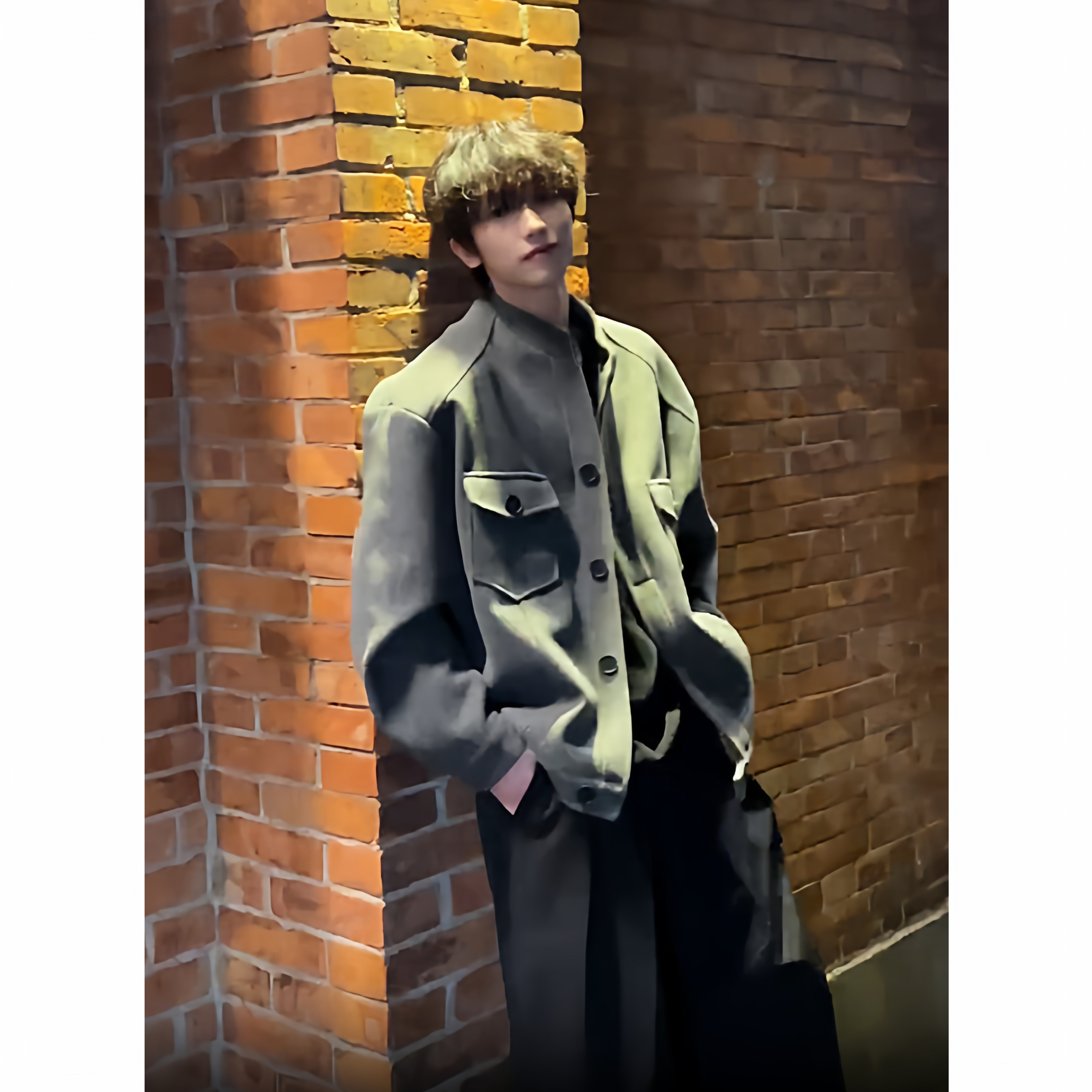 冬季 立领毛呢夹克男高级感痞帅休闲加厚潮牌呢料呢子外套 2025新款