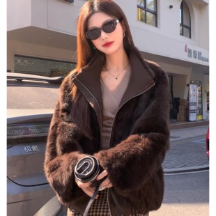 大衣新年战袍宽松外套 兔毛皮草派克服年轻款 2025年新款 双面穿短款