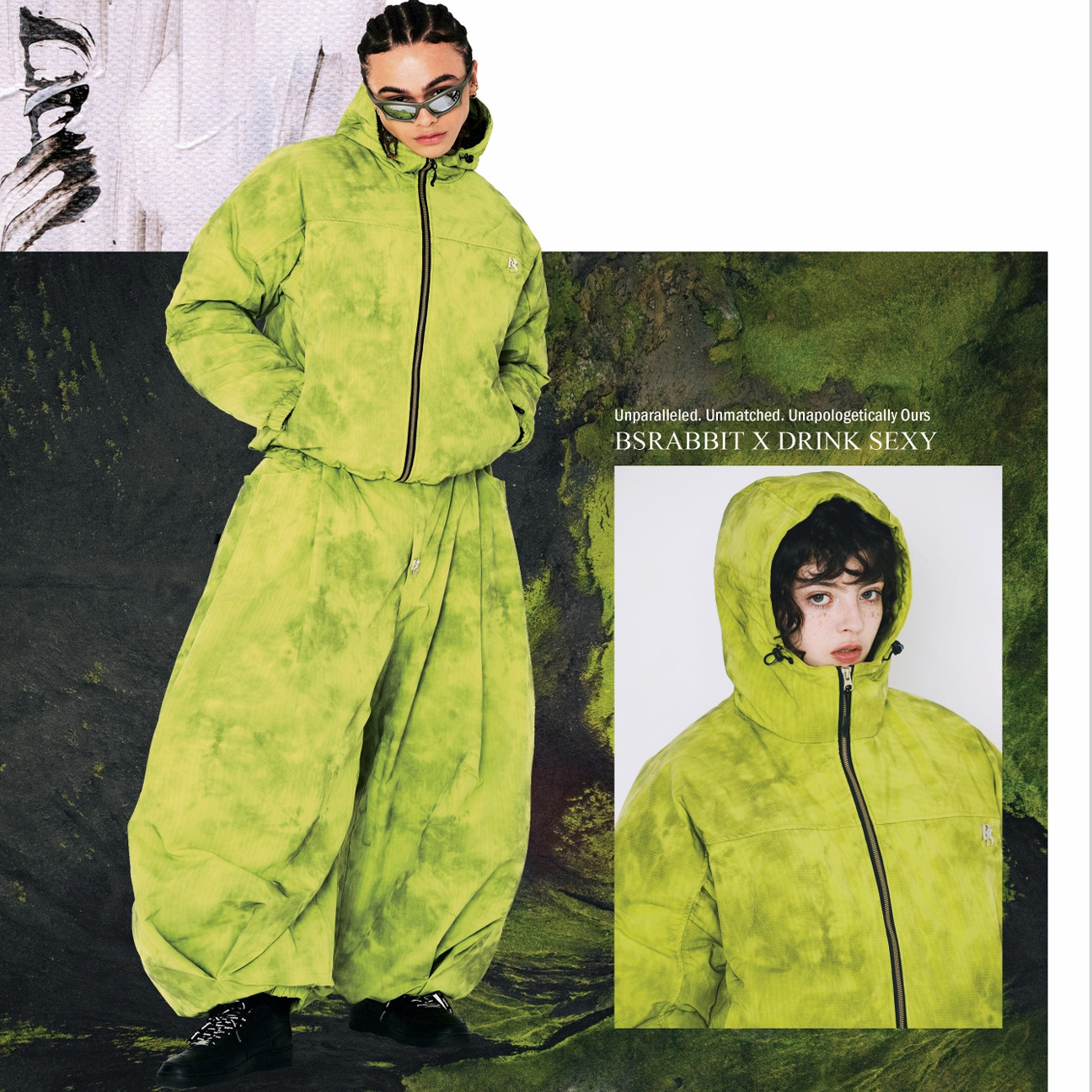 灰色绿色 套装 2526BSRABBIT韩国滑雪服男女款 单板双板防水连帽开衫