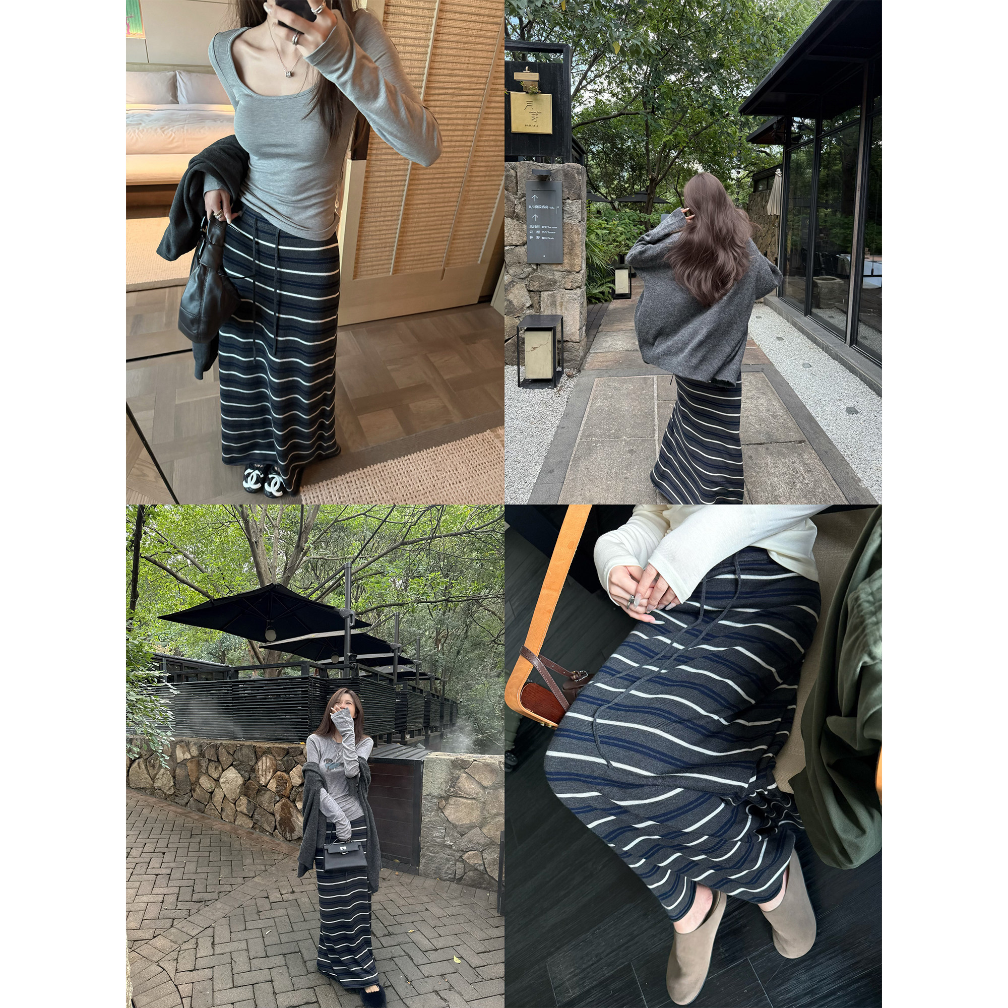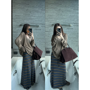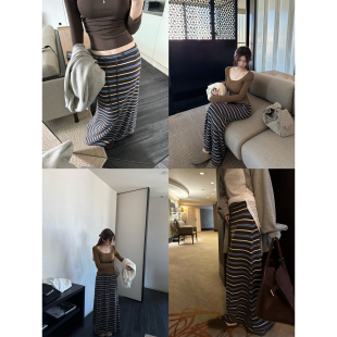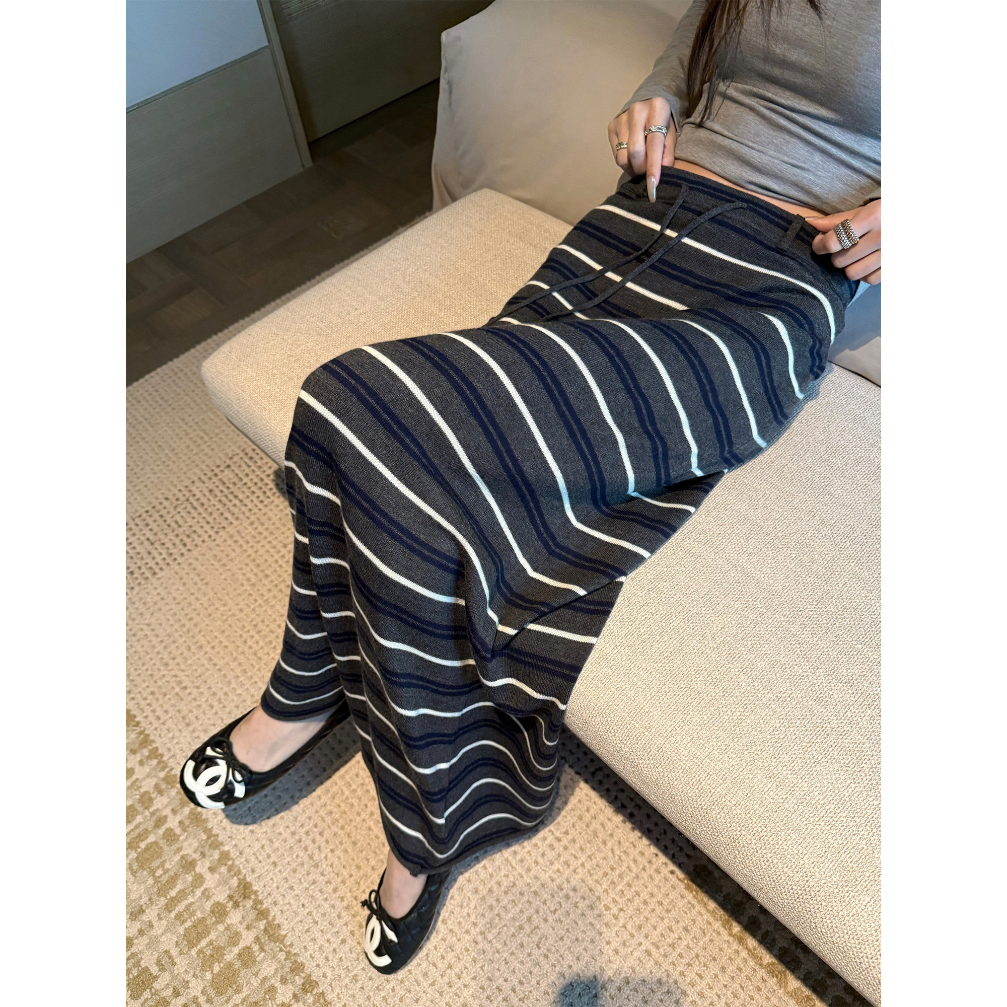 LIL 配色显瘦软糯针织裙半身裙长裙春秋 CHER撞色条纹裙&丝光羊毛