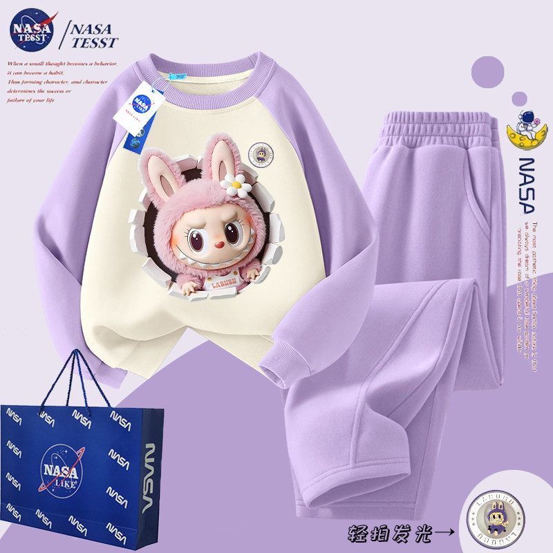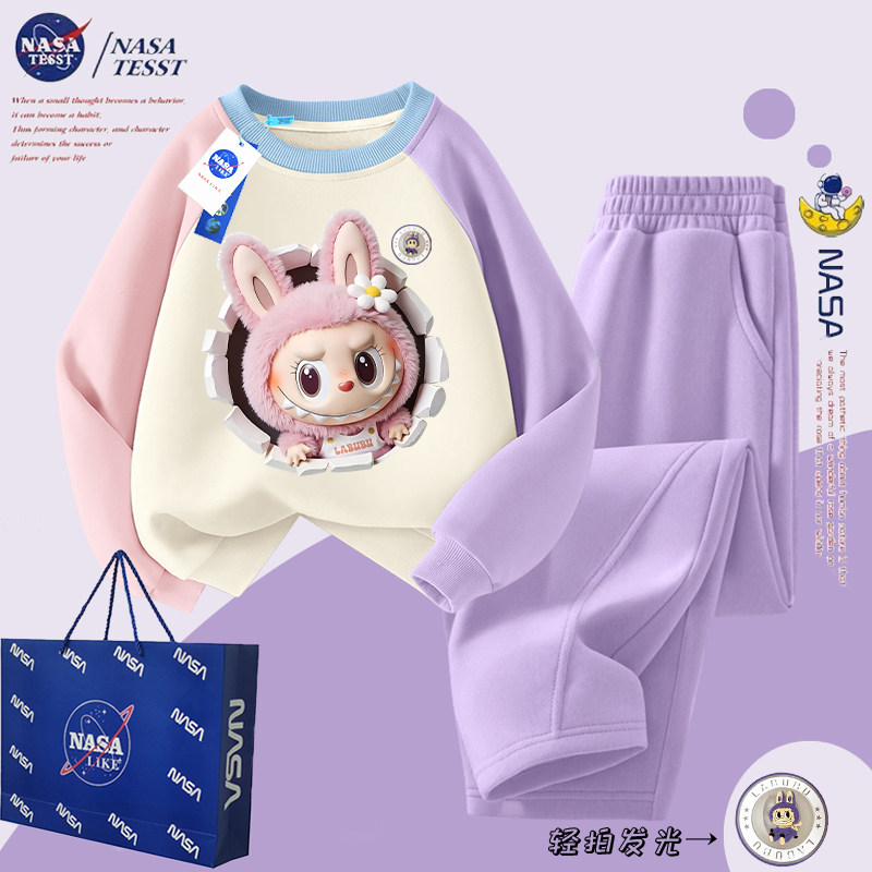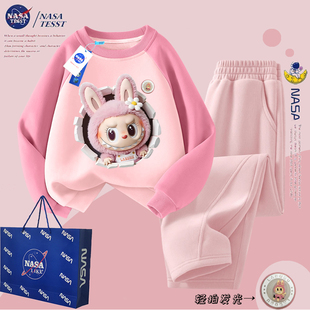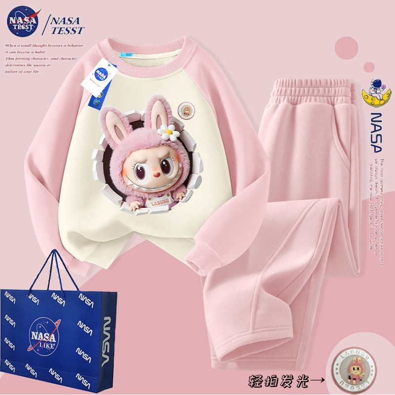 NASA联名女童发光拉布布加绒圆领卫衣套装 上衣潮 儿童秋冬女孩卫裤