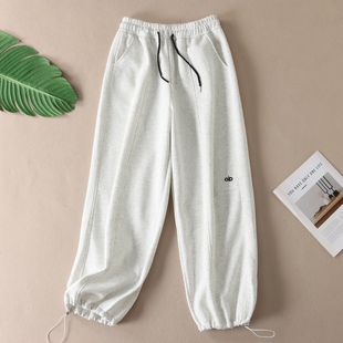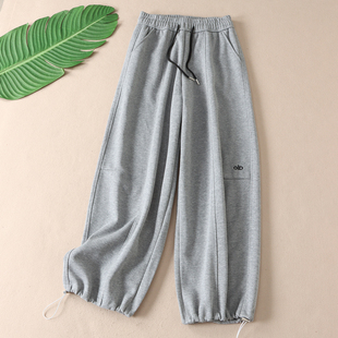 束脚休闲阔腿小个子卫裤 加绒棉裤 女秋冬2025新款 灰色羊羔绒运动裤