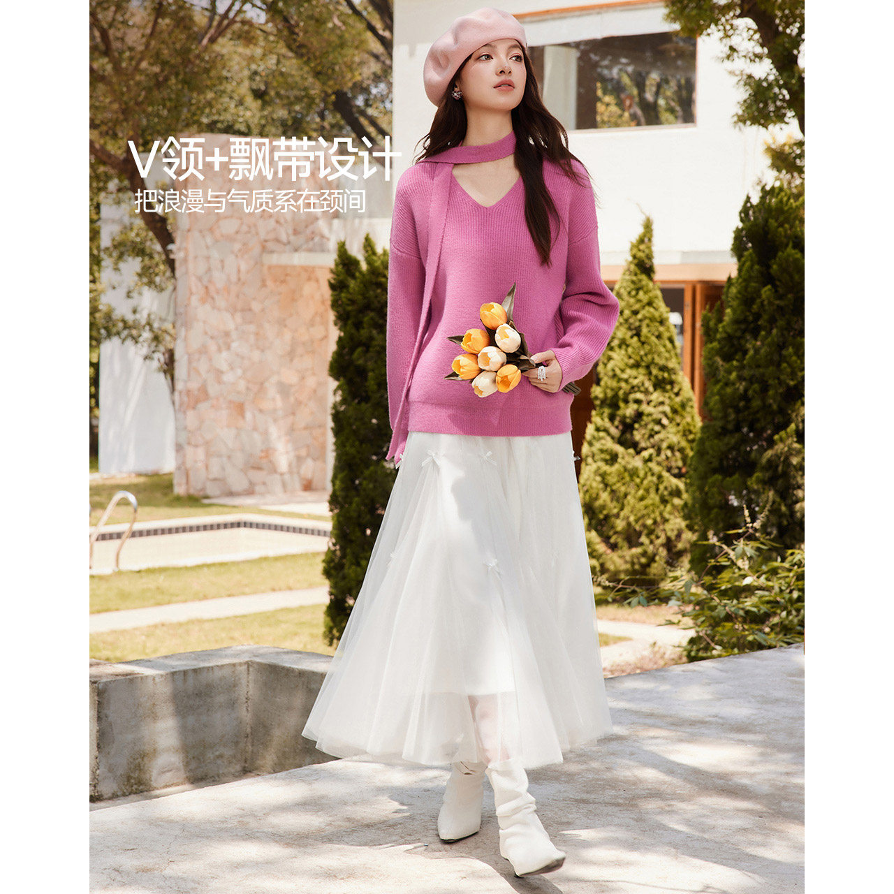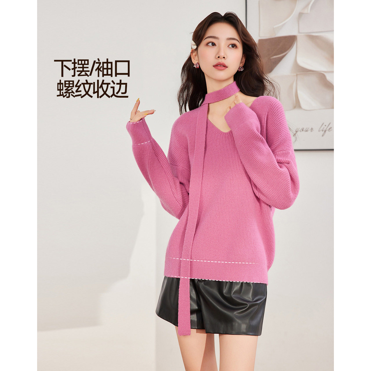 女纯羊绒毛衣针织打底衫 气质美学 100%纯山羊绒开衫 修身 秋冬 法式