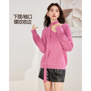 高级感上衣宽松打底针织衫 圆领100%纯山羊绒衫 女高端毛衣秋冬新款