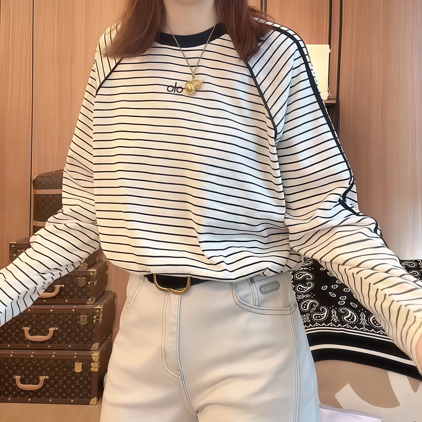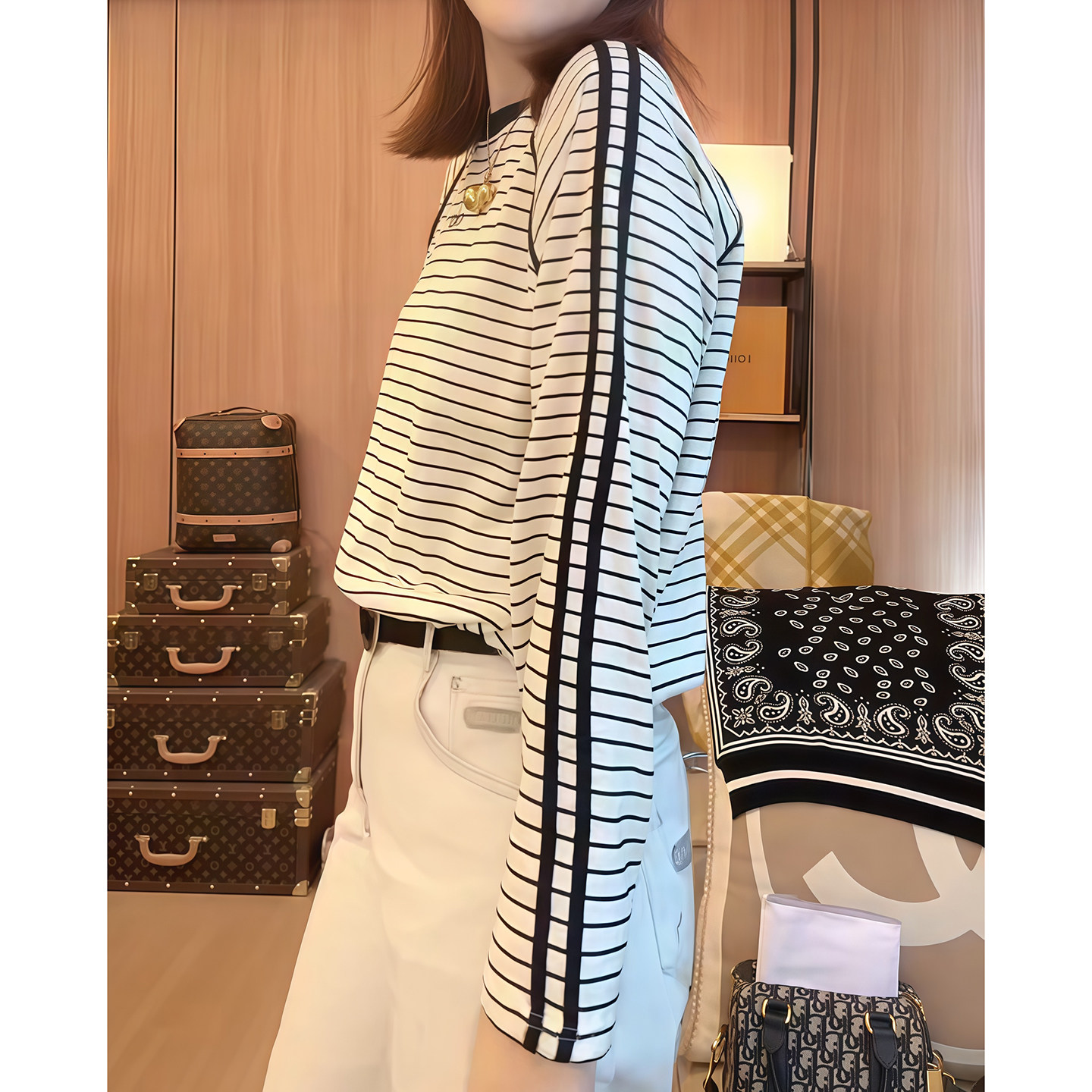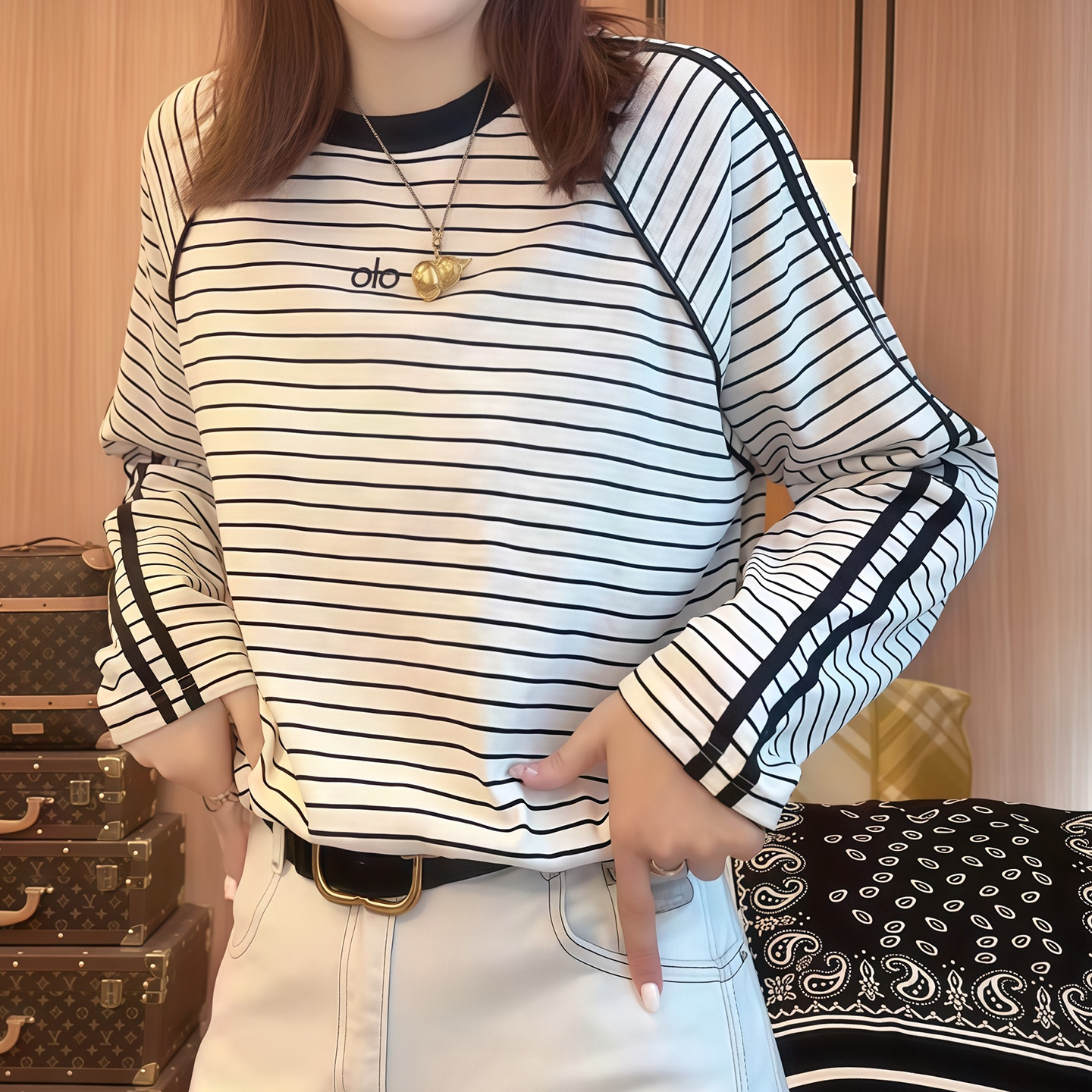 刺绣宽松百搭大码 设计感撞色长袖 爆款 新款 胖mm上衣 t恤女2025秋季