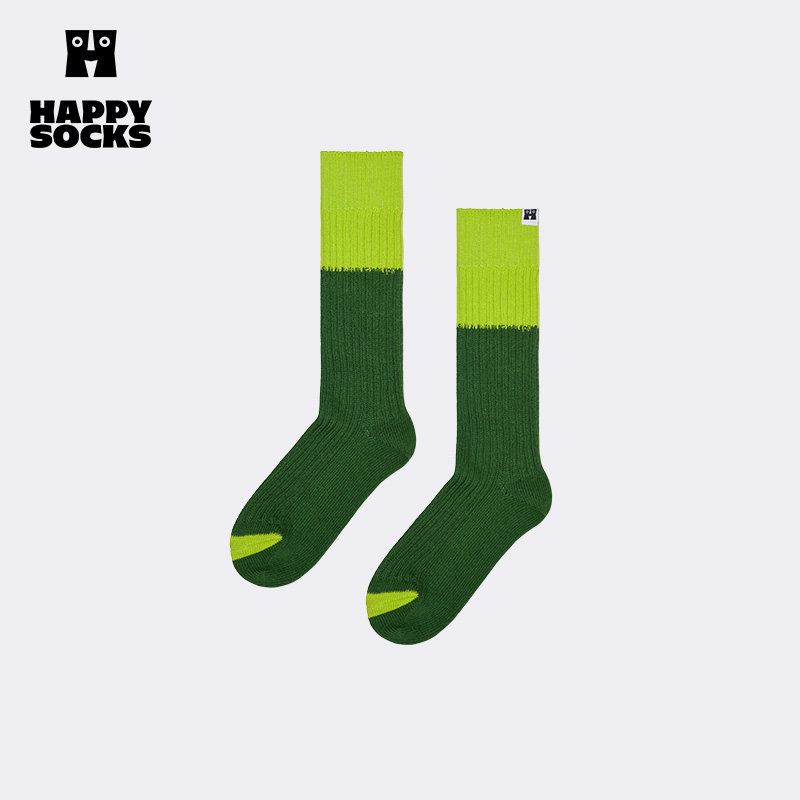Socks潮流百搭ins堆堆袜子个性 Happy 小众绿色中筒袜 春夏款