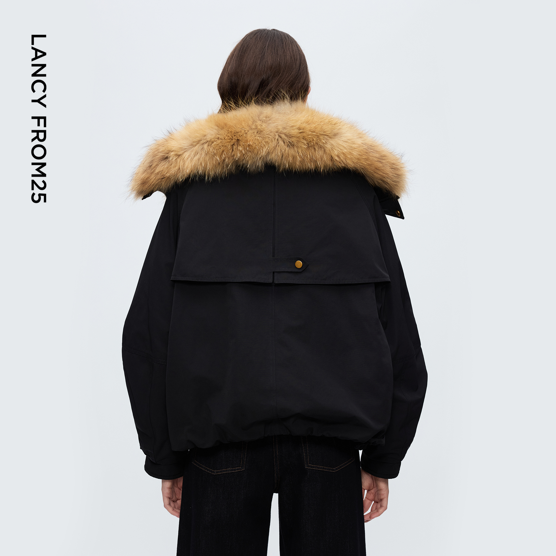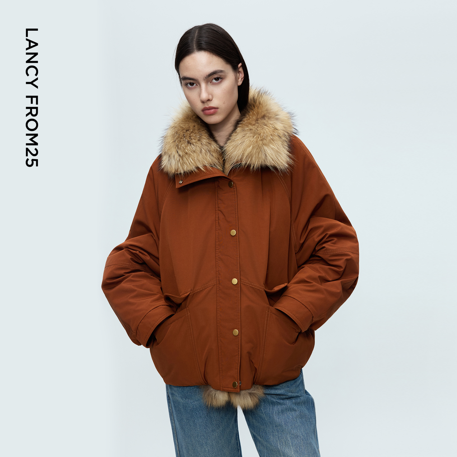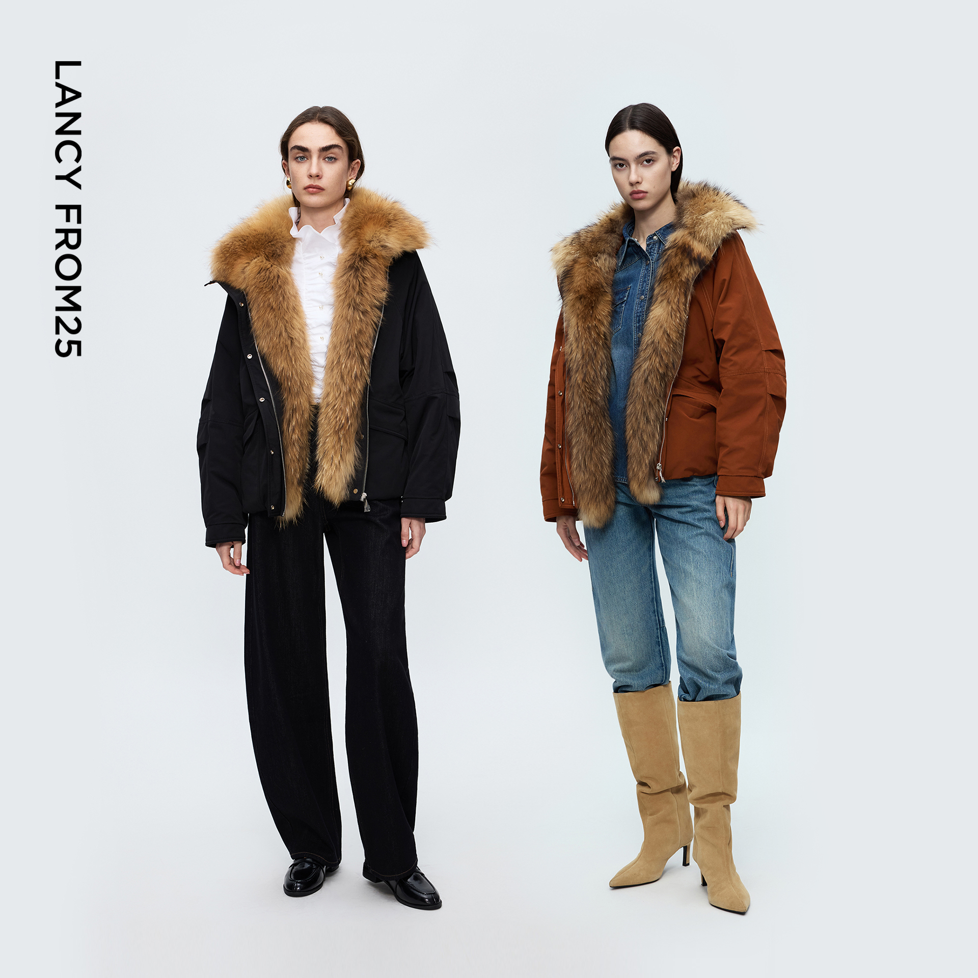 朗姿霍尔多巴吉白鹅绒貉子毛立领羽绒服通勤风外套2025年冬季 新款